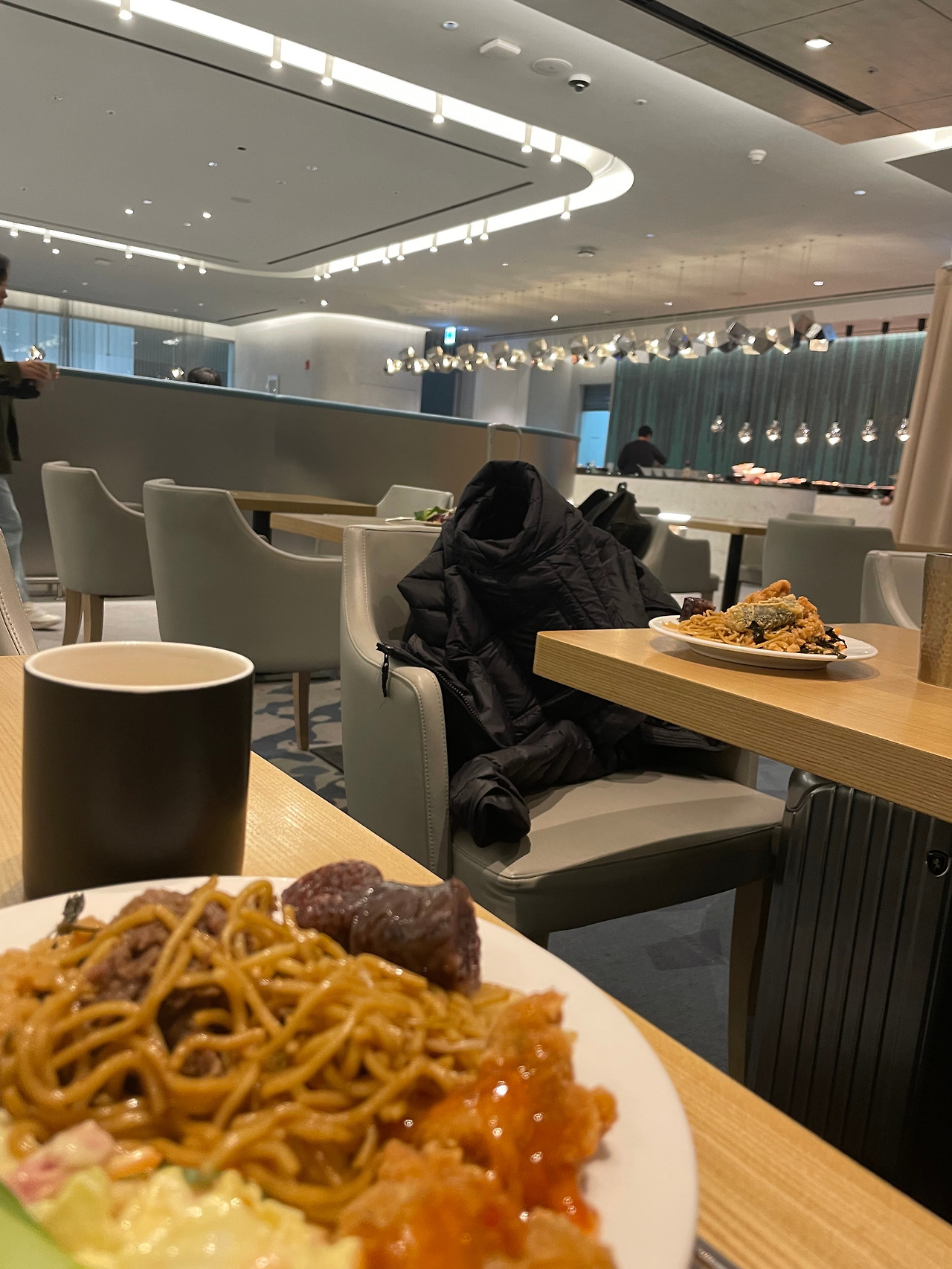 1시에 도착해서 라운지로 향했다. 라운지라니. 누런 불빛과 음식, 여행 전 여유로워 보이는 사람들 속에서 나도 여유 있는 척해보았다.