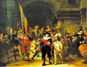 분명, 네덜란드의 암스테르담에서 역사의 명작인 렘브란트의 '야경'을 답사했을 고흐는, 램브란트가 그 어둠 속에서 잡아낸 '빛'을 보지 못했다. 그것은 파리에 와서도 발견되지 않으며, 아를에 가서야 밤의 카페를 그리며 절정에 이른다.
