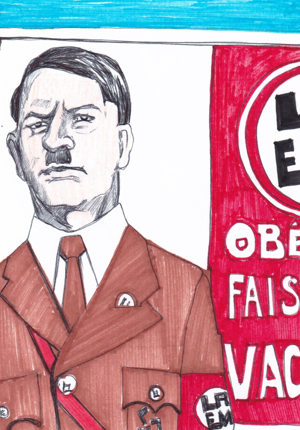 마크롱, 프랑스 대통령이 자신을 히틀러에 빗댄 광고를 게시한 시민을 고소한다고 한다.
