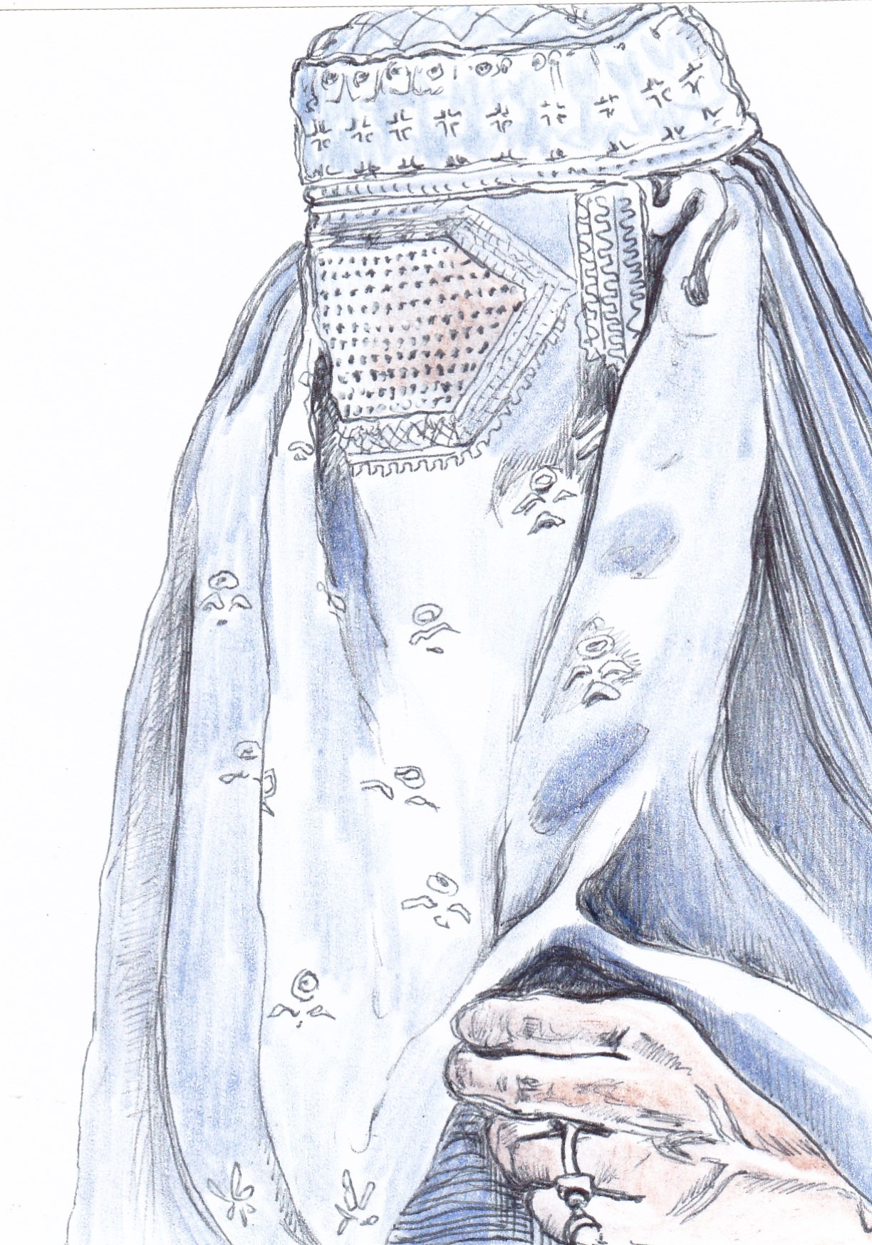A burqa-clad woman from the northern provinces, who fled the fighting between Taliban and the Afghan army.