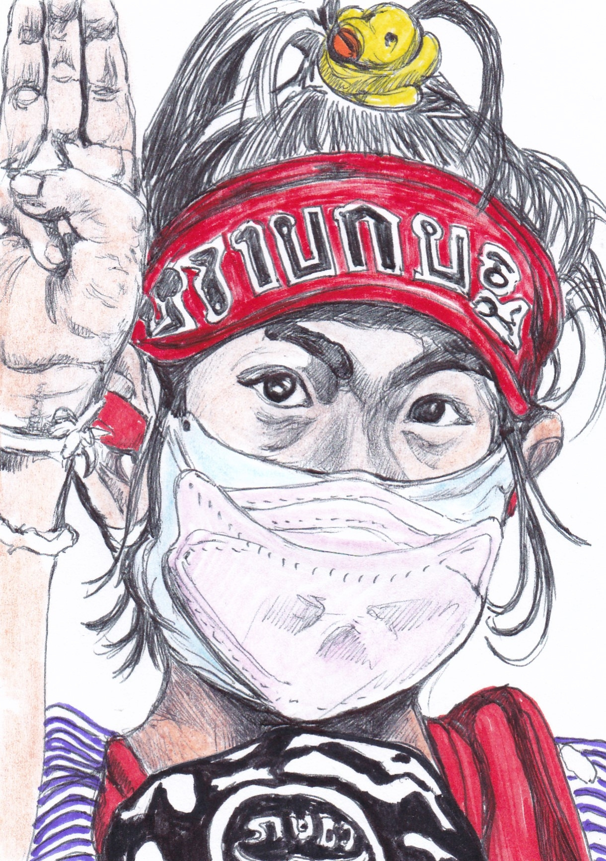 16 08 2021 Bangkok, Thailand 15 08 2021 A child sits on the shoulders of an anti-government protester