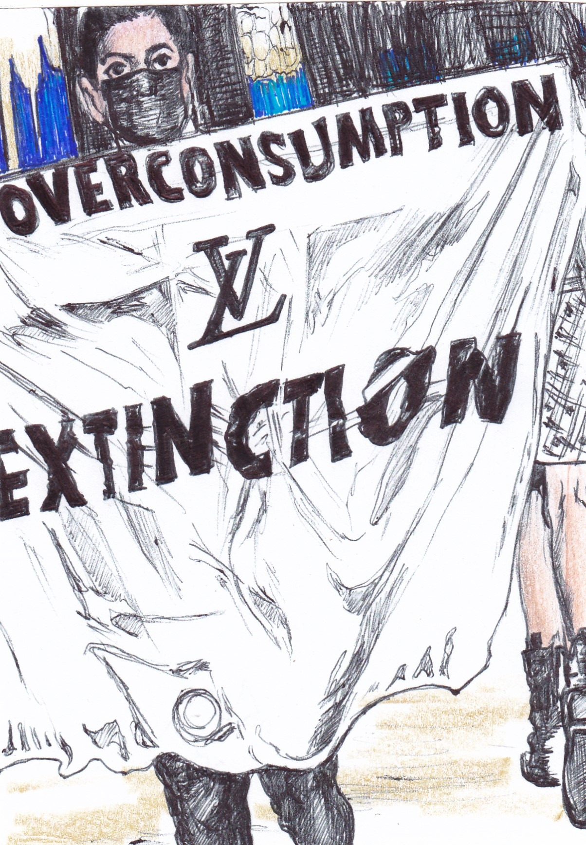 'overconsumption = extension ( 과소비 =종말 )'이라는 현수막을 펼쳐 든 것은,
