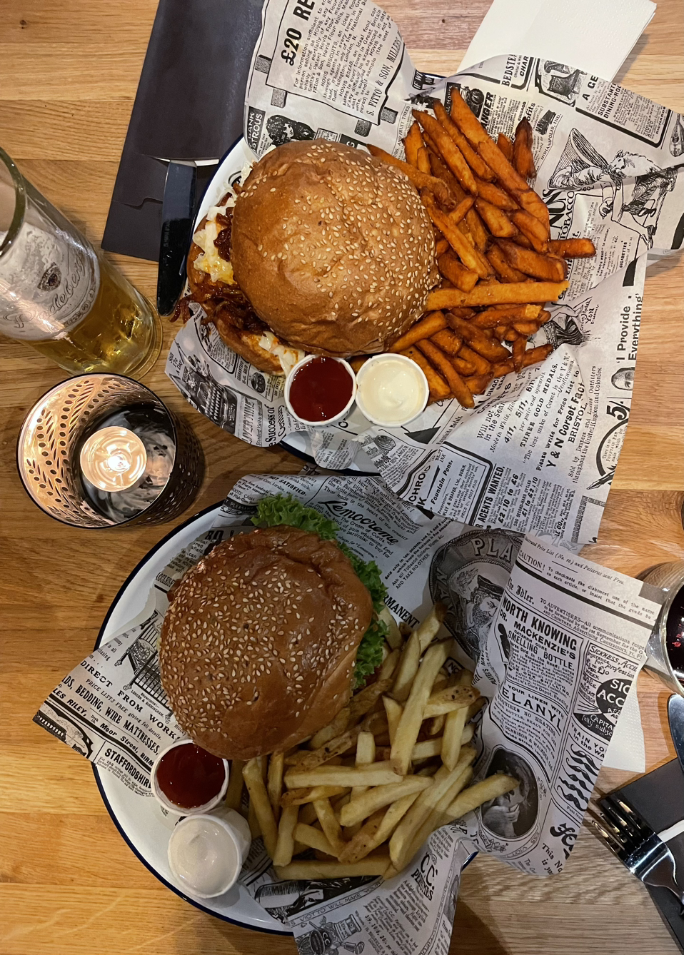 '스테이크'와 '수제 버거' 중 어느 것을 더 좋아하는지는 개인 취향에 따라 다르겠지만 얼마 전에 먹어본 수제 버거는 메인과 함께 먹는 고구마튀김과 감자튀김의 조합도 좋았습니다. '고구마튀김'과의 조합은 의외로 아주 특이한 맛이었습니다.(감자튀김에 비해선 아주 소프트한 편임.)