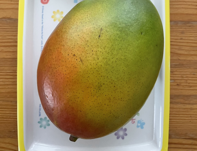 주의) 망고는 사과처럼 둥근 원형(round)이 아니고 럭비공(Rugby ball) 같은 타원형(oval)이어서 손으로 잡고 깎기가 쉽지 않아요. 더욱이 칼로 깎을 때 나오는 망고 과즙 때문에 미끄러워 더더욱 '손 다침'에 주의하셔야 합니다.