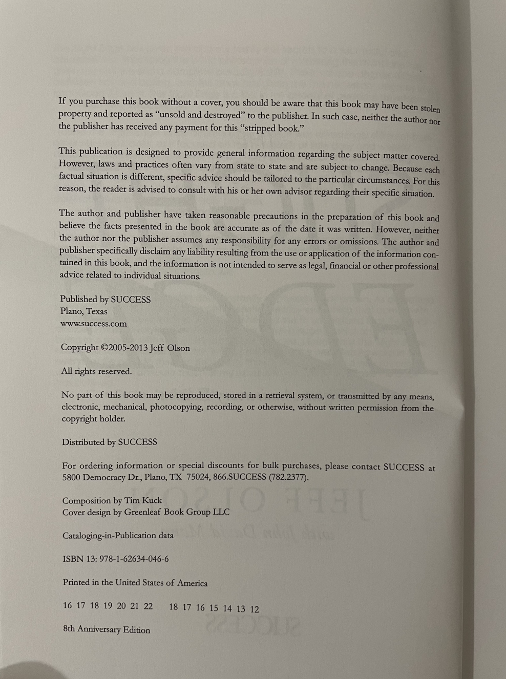 매일 조금씩 반복하는 것의 중요성은 이 책의 주된 논지이자 직접적인 스포와 연관성이 있으므로 여기선 이만 줄인다. 이 책은 성공적인 삶을 영위해 가기 위한 '열쇠'뿐만 아니라 삶을 대하는 태도, 접근 방식과 마인드셋(mindset)을 저자의 경험과 신념으로 이해하기 쉽게 풀어 서술하며 설득시키고 있다. "This book is not just another self-help book!"
