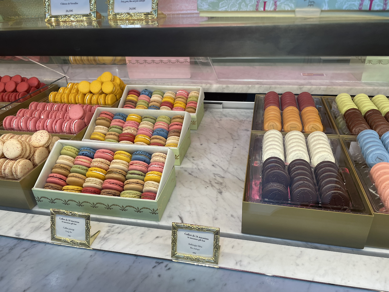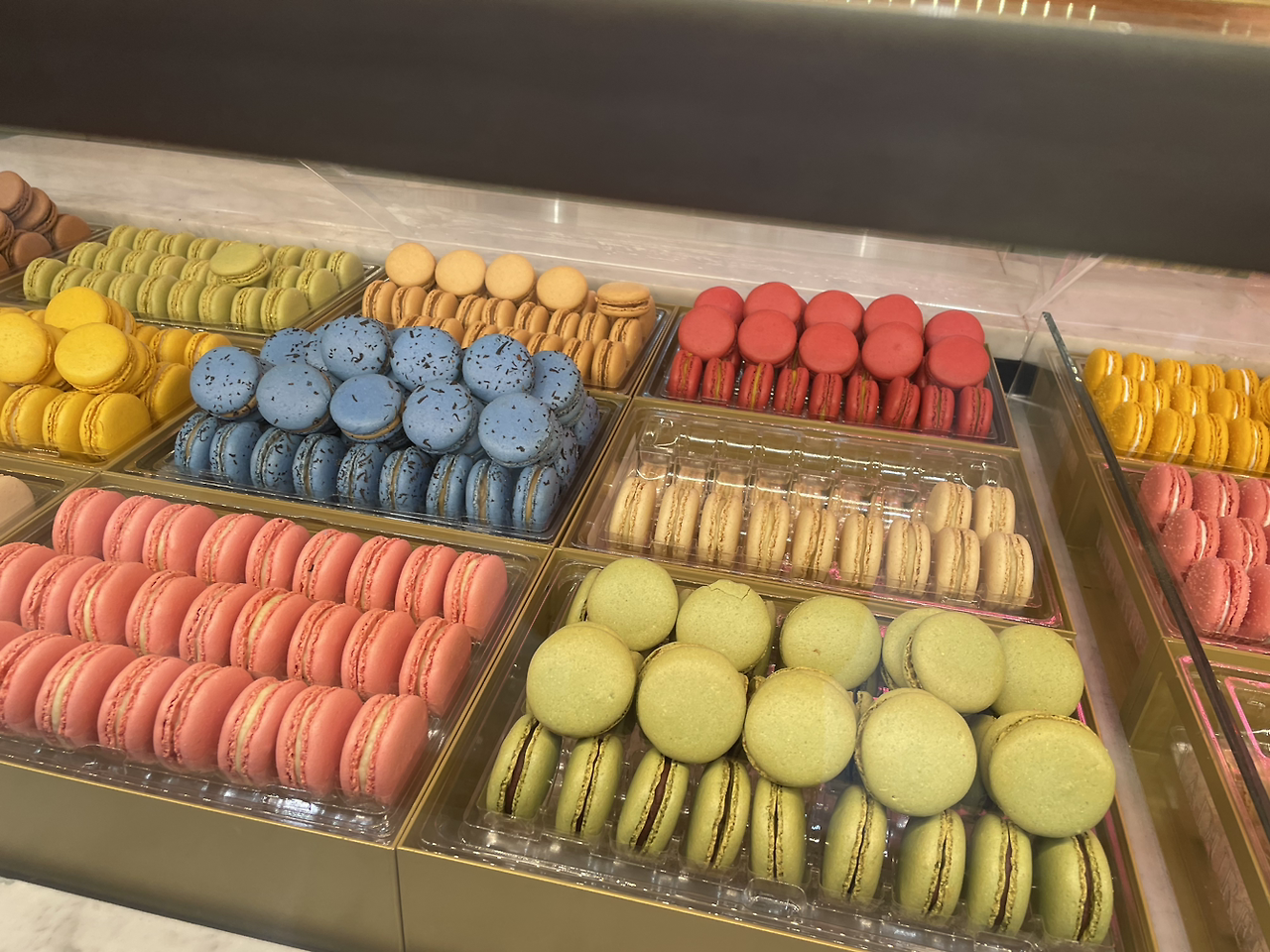 마카롱(macaroon) : 달걀 흰자, 설탕, 아몬드 가루를 배합해서 만든 머랭 쿠키의 한 종류. 프랑스의 고급 디저트로 알려져 있지만, 본래 유래한 것은 이탈리아였다. 20세기 이후 프랑스에서 개량하여 쿠키 두 개 사이에 크림을 넣은 형태를 갖게 되었다.