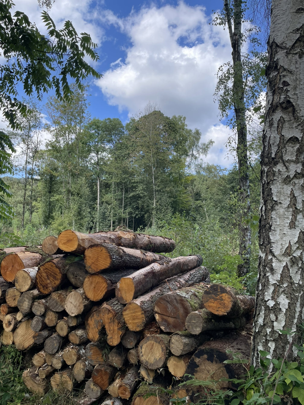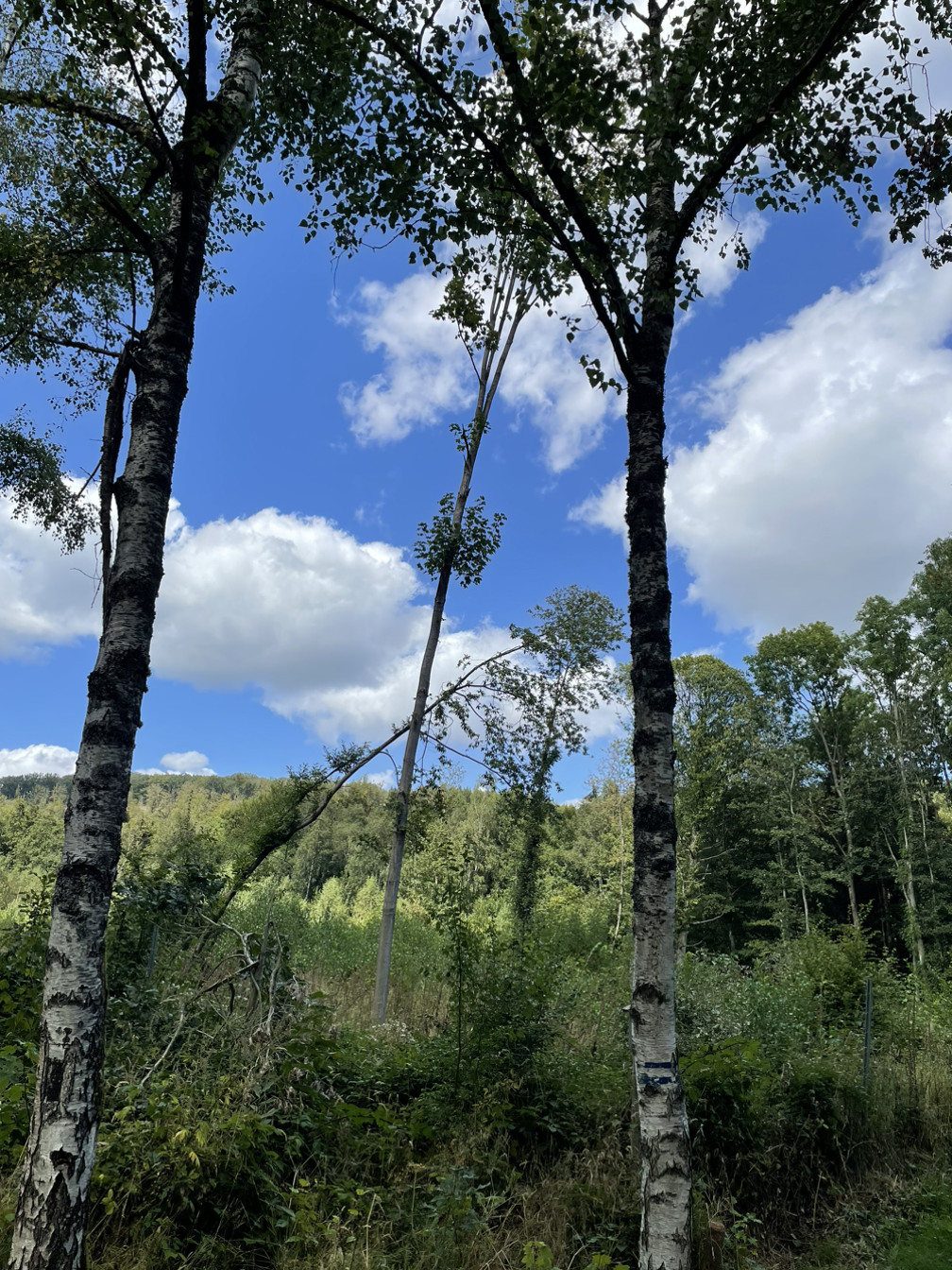 숲 속 산책길 초입 자작나무 한 그루는