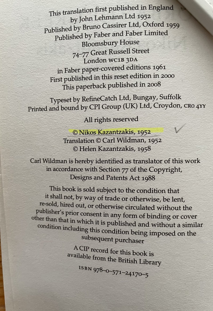 ( [Zorba The Greek], faber and faber Ltd. 1952, paperback 2008. Page No. 235)