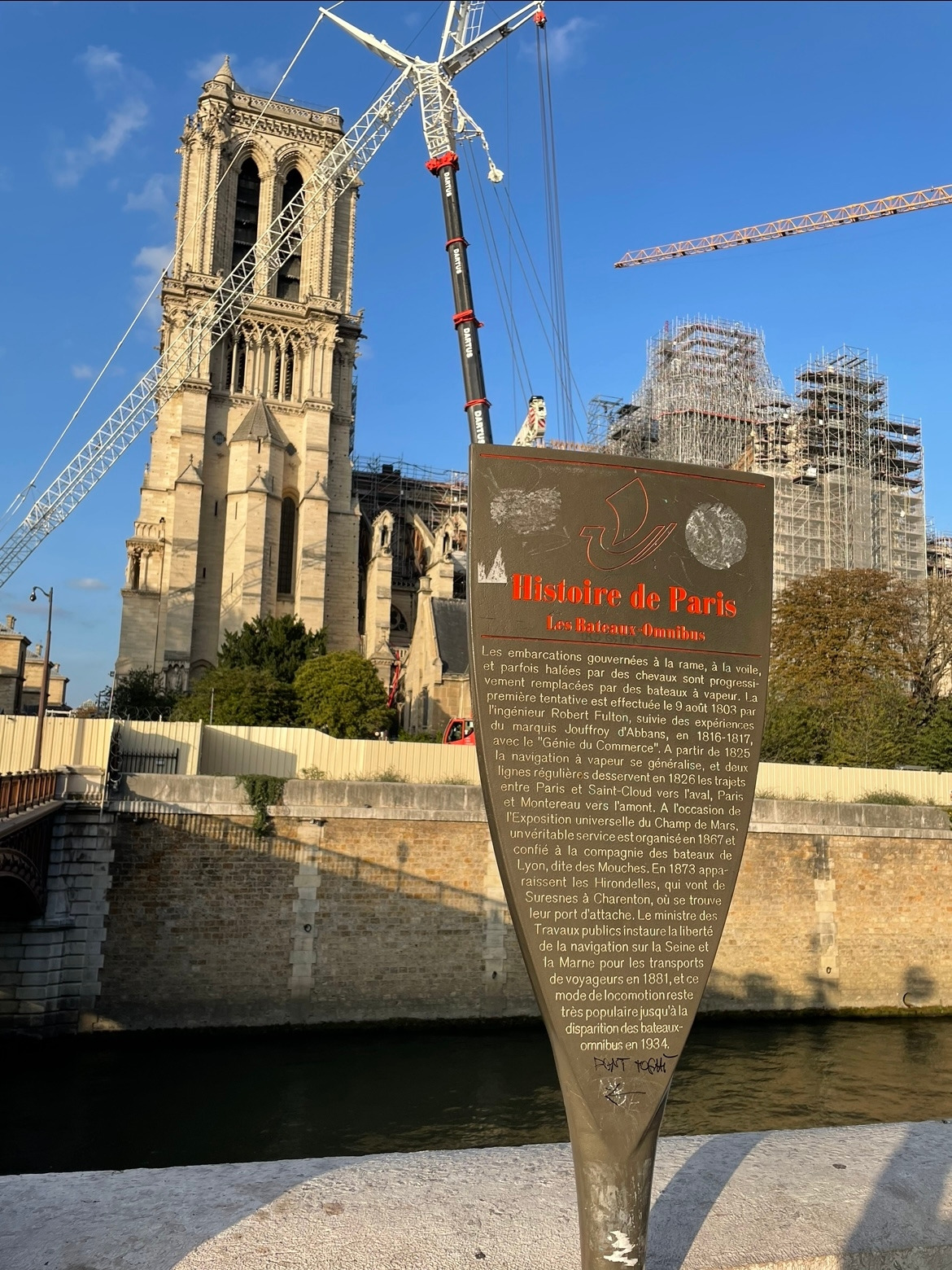 *파리 노트르담 대성당 Cathédrale Notre-Dame de Paris : (1163년 건축시작, 1330년 완공) 2019년 4월 15일 오후 6시 50분경 성당 보수를 위해 설치했던 공사시설에서 대형 화재가 발생. 화재는 6시간에 걸쳐 지속되었으며, 석조로 된 골조를 제외한 목재로 구성되었던 부분들은 거의 폐허로 변했다.(출처 : Daum [백과사전])