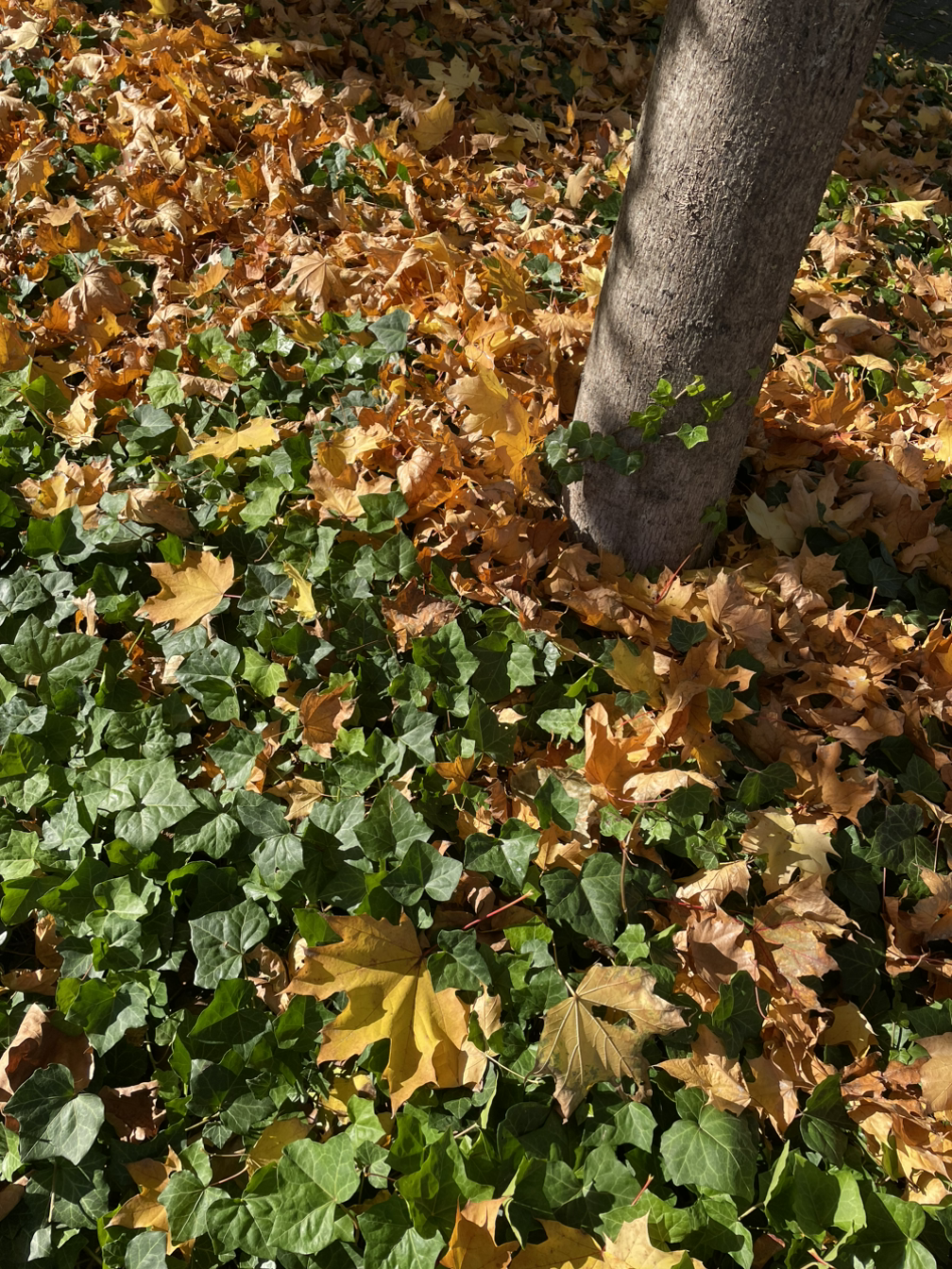 커다란 나무 아래 형형색색 낙엽들 수북하구나