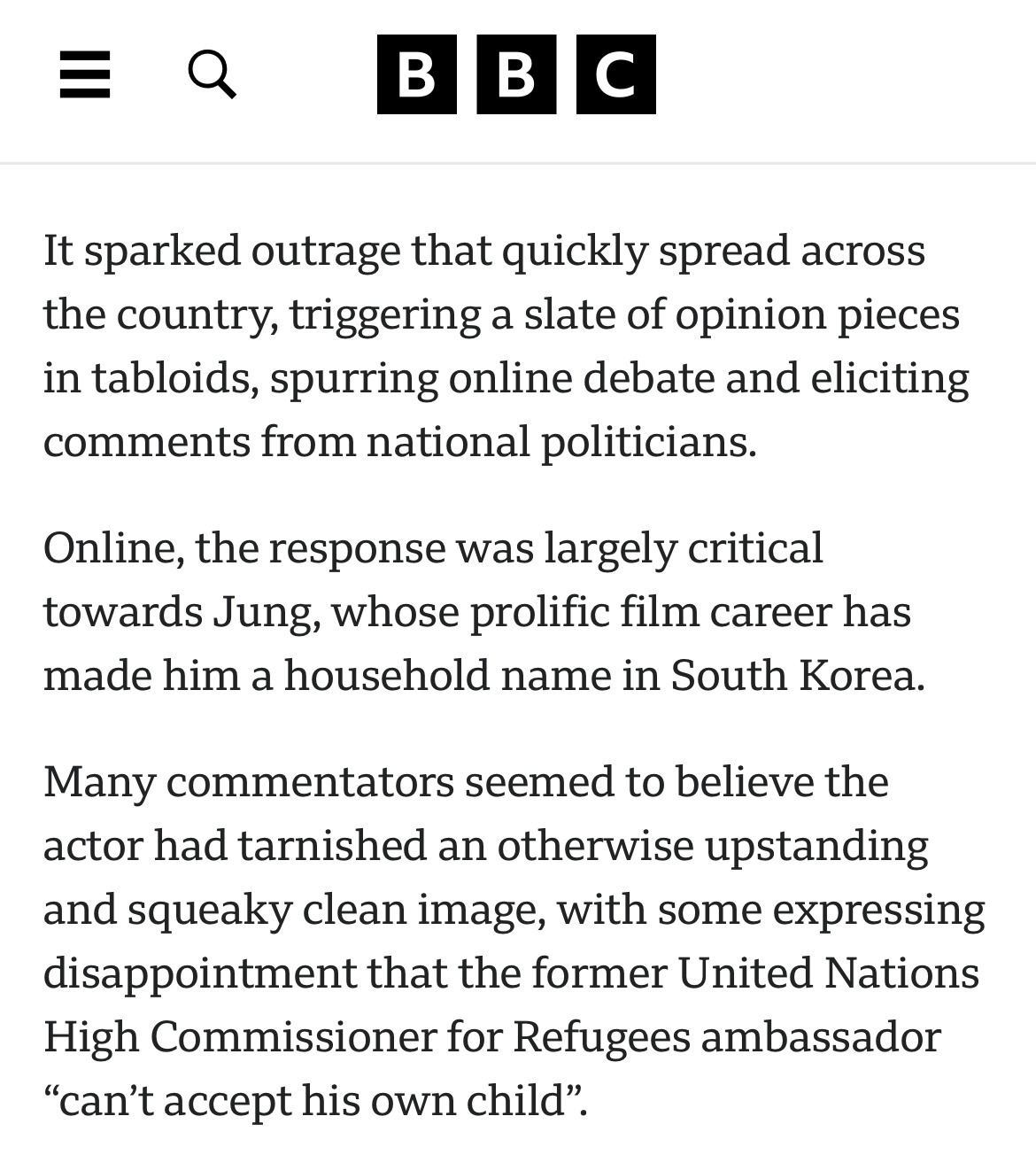 A South Korean actor’s revelation that he fathered a child with a woman to whom he is not married has triggered a national debate over celebrity conduct and non-traditional family structures. (BBC News by Gavin Butler on 27 November 2024)