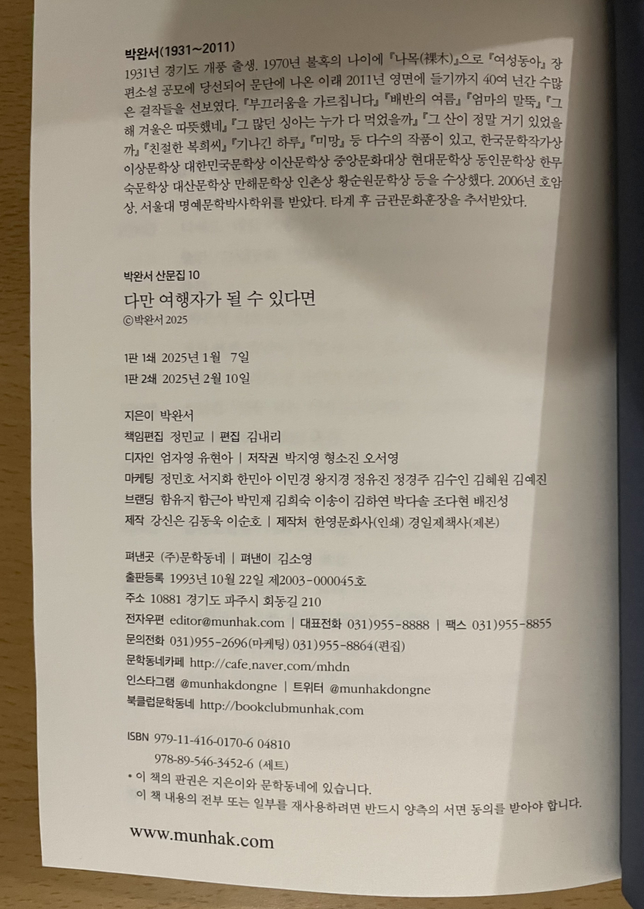 <다만 여행자가 될 수 있다면> 박완서 산문집 10 (2025)