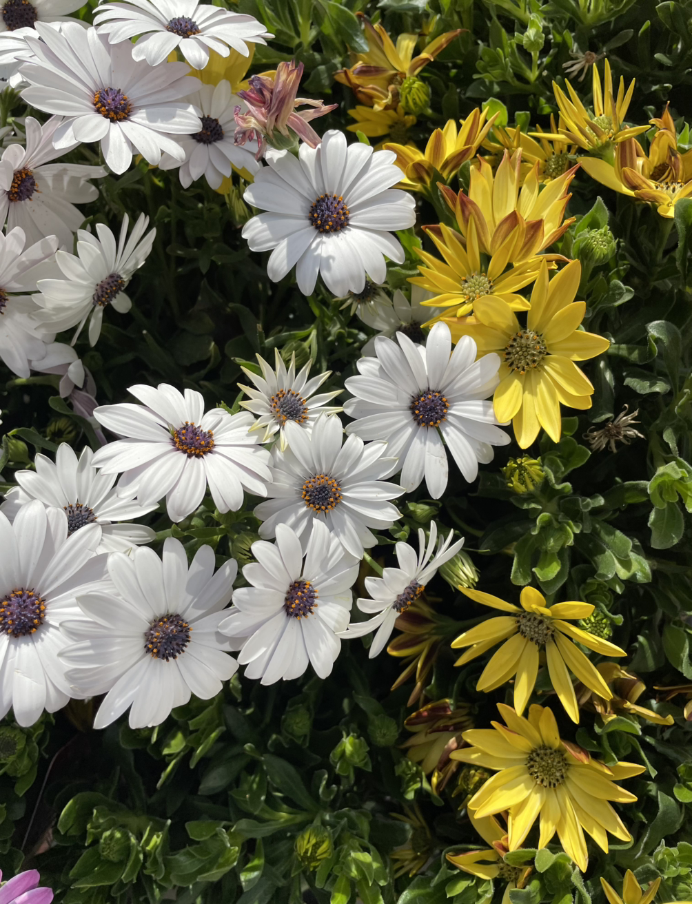 환하게 핀 흰꽃 한 송이가 미소로 옆에 있는 친구에게 묻습니다.