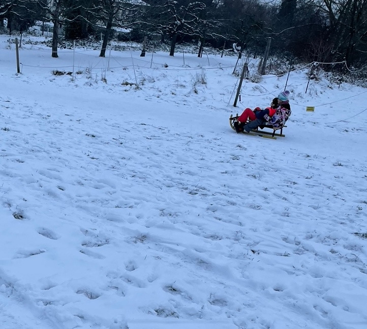 썰매 타느라 신난 아이들은