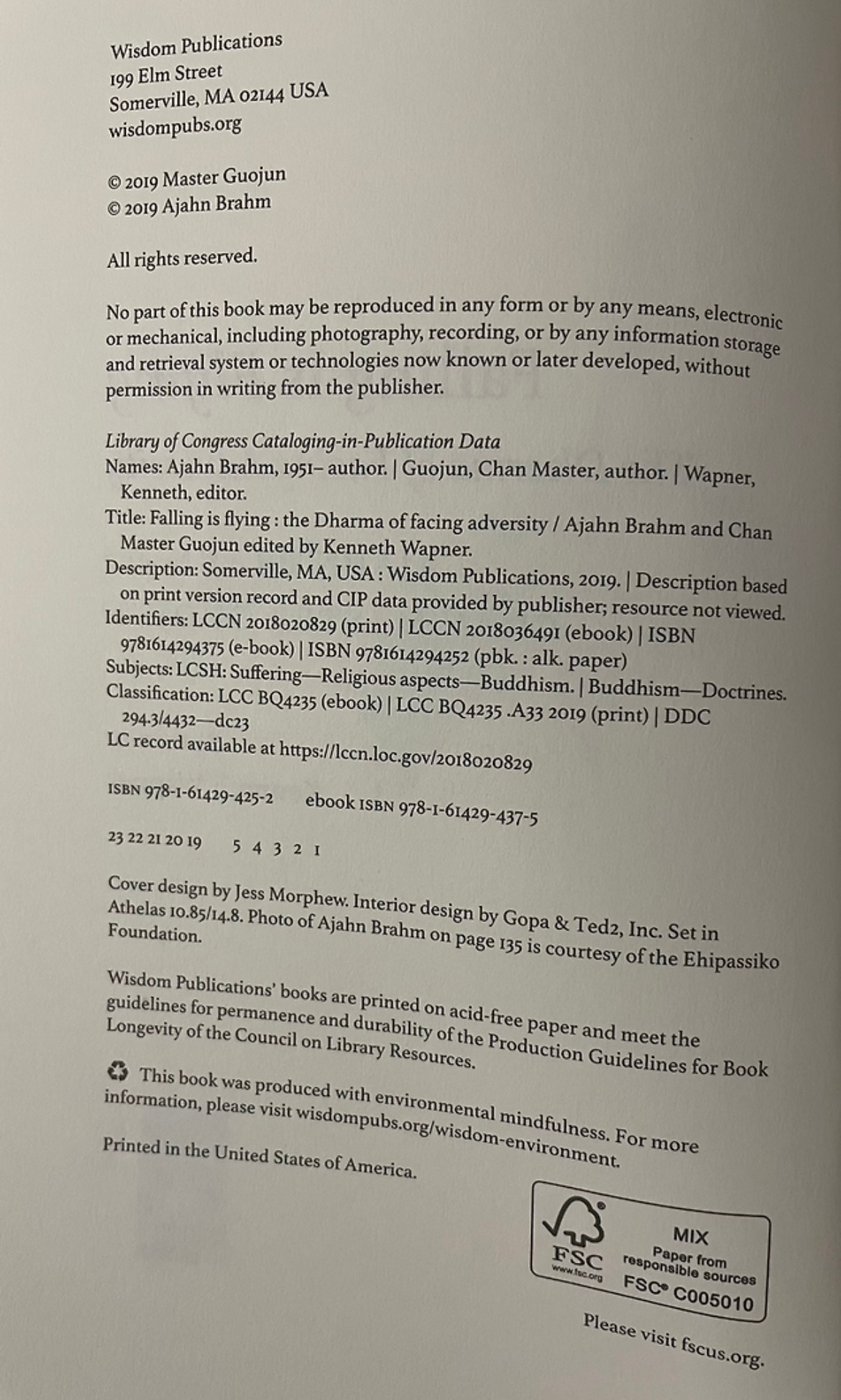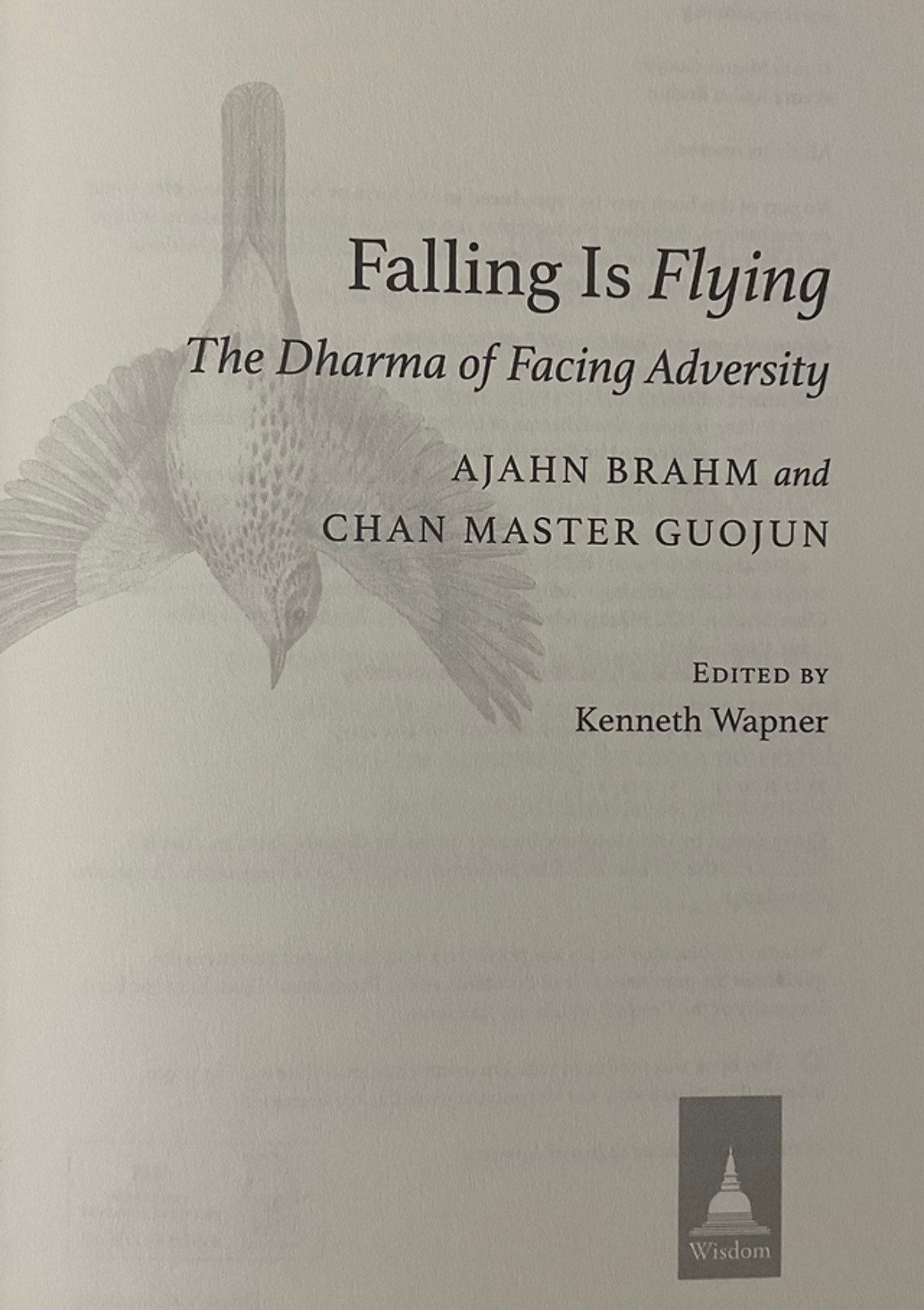 오늘 소개할 책은 명상 수행의 대가인 두 스님(아잔 브라흐마 & 궈쥔 선사)의 ‘명상 에세이’ 같은 『Falling is flying』 -The Dharma of Facing Adversity (2019) by Ajahn Brahm and Chan Master Guojun이다.