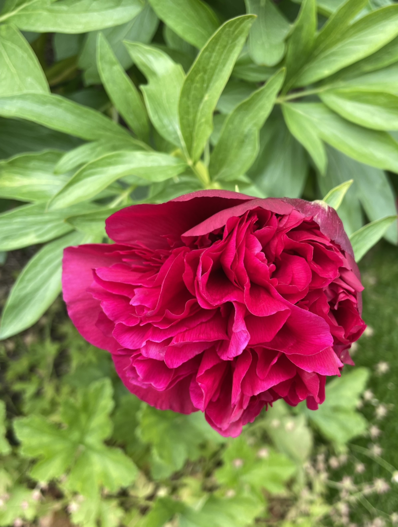 멀리서 망울만 맺힌 너를 처음 보고 나는 그저 동그란 열매 하나 열리는 줄 알았다. 하루하루 네 앞 지날 때마다 서서히 마술魔術 부리는 듯 피어나던 너. 나는 다음날을 못 기다려 힘들었다, 조바심에 밤잠까지 설쳤다. 내가 애타게 지켜볼 때마다 네 고운 자태姿態, 네 감싼 꽃잎 하나 둘 펼쳐 내느라 너는 얼마나 힘들었니. 너는 어둠 밝히는 불빛처럼 이 봄날 매일매일 조금씩 피어올라 안개 낀 산책길 어귀 붉게 빛나는구나. 이제 온 세상을 환하게 밝히는구나.