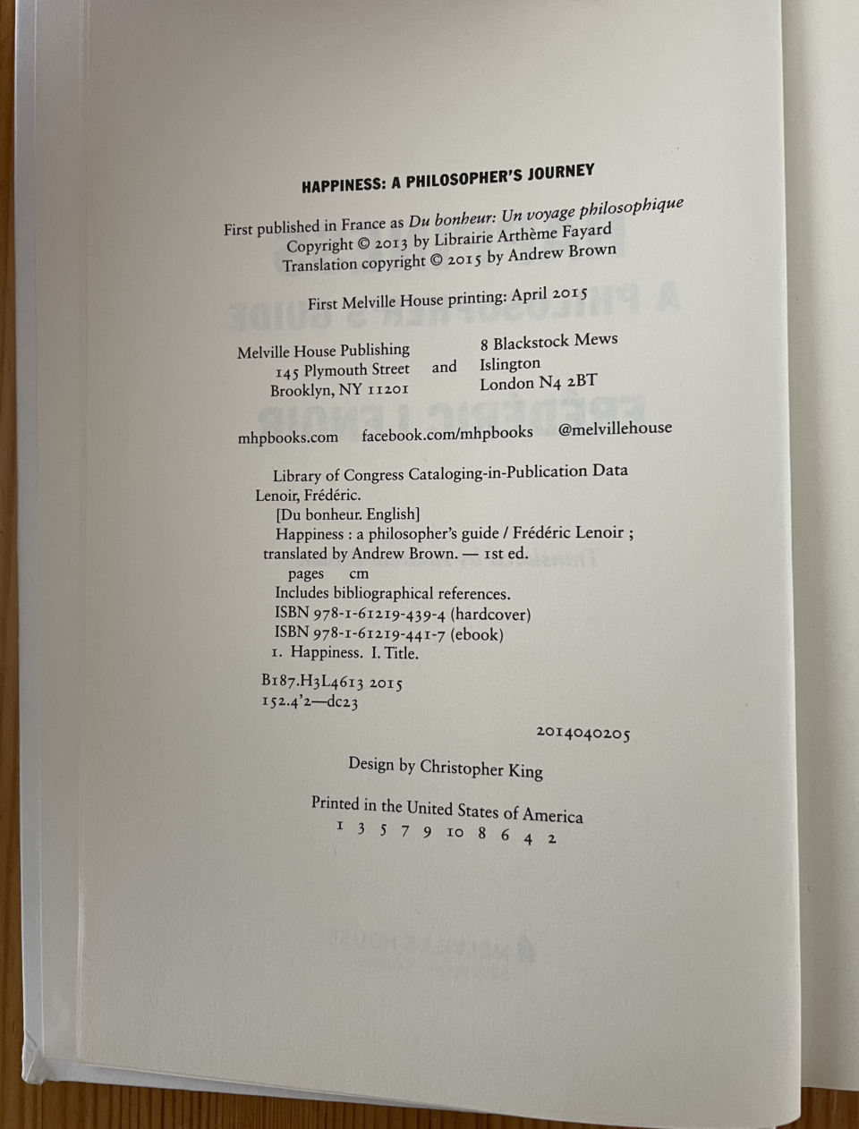 책장 정리 정돈하면서 오늘은 프랑스 철학자 프레데릭 르누아르(Frédéric Lenoir)의 [Happiness: a philosopher's guide]를 기록해 둡니다. 프랑스 첫 출간은 2013년 [Du bonheur: Un voyage philosophique]이며 한글 번역본은 『행복을 철학하다』(책담 2014)로 나와 있네요.