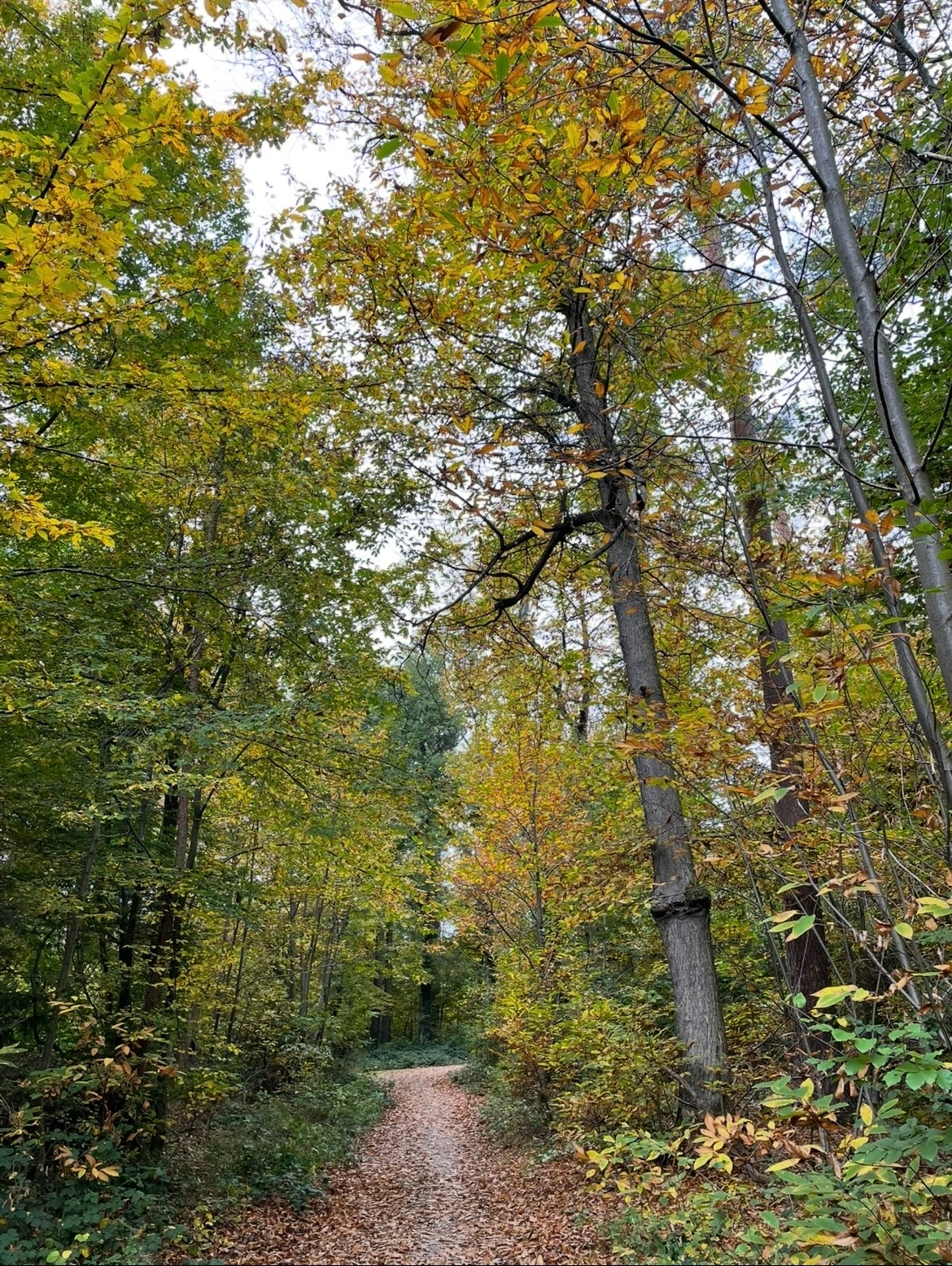 그래도 여기 좁은 산책길에 이 계절은 점차 순리대로 저물어가는 것 같습니다. 여기 숲 속 나뭇잎들은 제일 높이 자란 키 큰 나무에서 먼저 떨어지고 있네요.