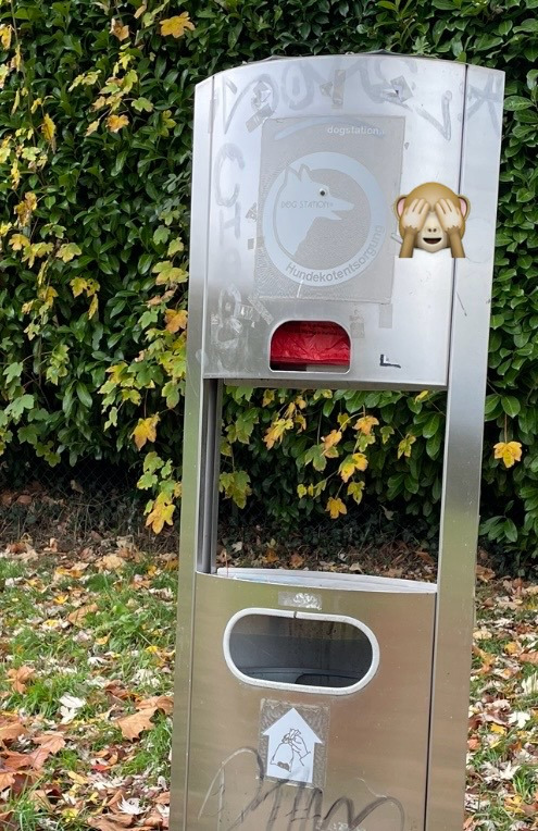 이 견변처리함[Hundekotentsorgung]의 위쪽 부분에는 붉은색의 비닐봉지가 들어있어 편리하게 한 장 씩 뽑아쓸 수 있으며, 견주(犬主)는 개가 배변해 놓은 것을 이 비닐봉지에 싸서 아래에 보이는 견변처리함에 넣으면 된다.(*아래 첨부한 사진 참조)