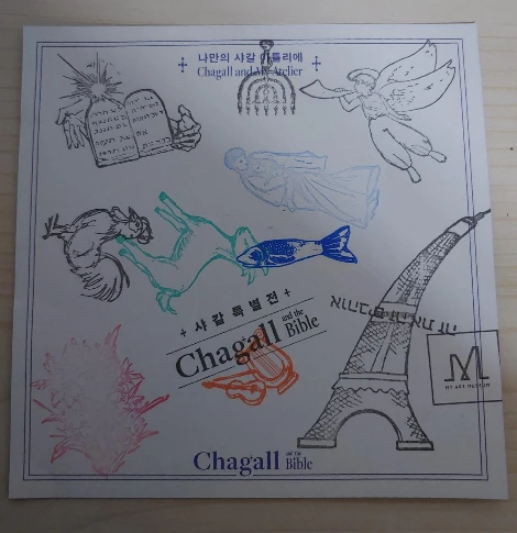 (전시를 다 보고 나면 이렇게 스탬프를 통해 샤갈의 그림들로 꾸밀 수 있다. 샤갈의 세계관에 맞게 꾸며 보려 노력은 해 보았다. 사람이 별로 없었다면 스탬프를 좀 더 잘 찍을 수 있었을까? 음, 미술엔 영... 소질이 없다.)