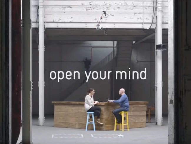 하이네켄은 Open Your World라는 광고를 통해, 정반대의 신념을 가진 사람들도 상대방의 목소리에 귀 기울이고 소프트한 분위기에서 대화를 나눌 수 있음을 보여준다.