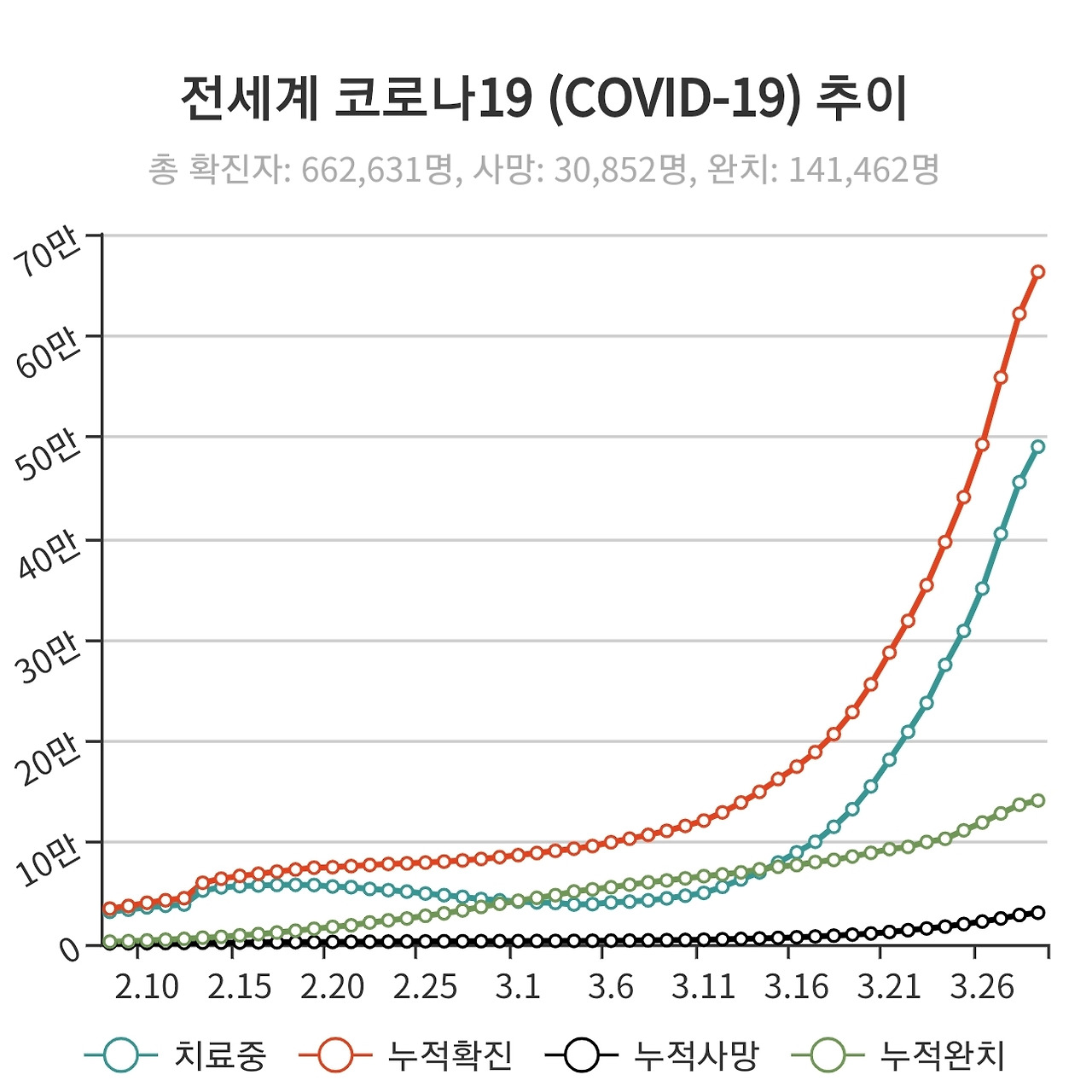 코로나19(COVID-19)가 발생한 지 벌써 두 달이 넘어가고 있습니다. 중국 우한을 포함한 후베이성 지역에서 처음 시작된 바이러스가 한국, 아시아를 넘어 현재는 유럽과 미국까지 크게 확산되며 전 세계를 위협하고 있다. 코로나19 전 세계 확진자수는 66만 2천여 명에 사망자수는 3만 명을 넘어섰다. (03월 29일 오전 9시 현재 기준)