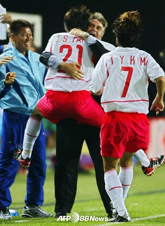 박지성이 유명해진 건 2002 한일 월드컵이 계기가 됐다. 일본 J리그 '교토 퍼플상가'에서 뛰던 무명 축구선수 박지성은 히딩크 감독의 눈에 띄며 월드컵 대표 선수에 이름을 올렸다. 그는 그라운드 위에서 헌신적인 플레이를 펼쳤고 포르투갈과의 예선전에서 결승골을 넣으며 1-0 승리를 이끌었다. 당시 골을 넣고 히딩크 감독에게 안기는 장면은 아직도 회자되는 명장면이다.
