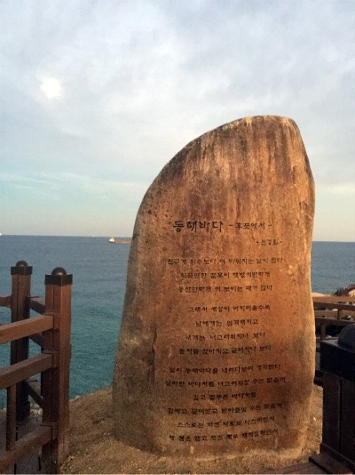동해 바다처럼 너그럽게 살고 싶은 시인의 소망이 잘 드러난다. 돌과 동해 바다를 대비시켜 화자가 동경하는 관대하고 포용력 있는 삶을 살고자 하는 시인의 깨달음이 느껴지는 시이다.