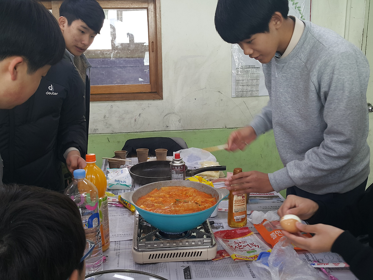 단합 대회 소풍에서 여친에게 하듯 노련한 솜씨로 떡볶이를 만들고, 볶음밥까지 만든 ♡.