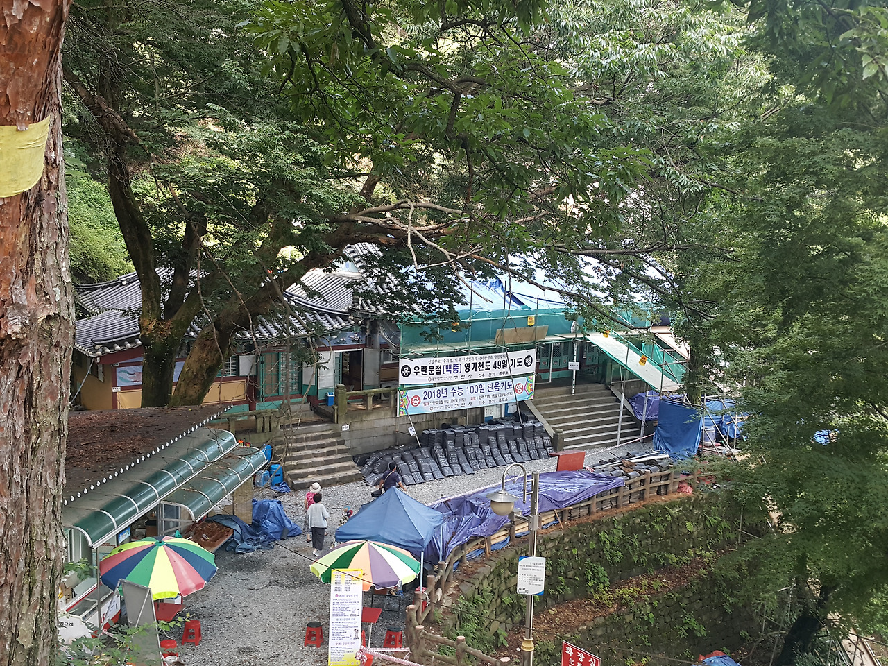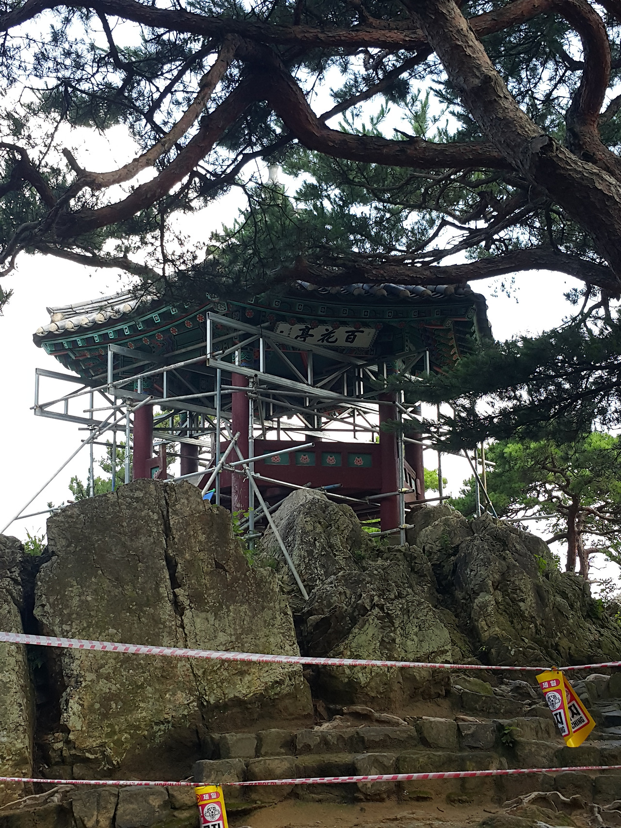 그 유명한 낙화암에 이르렀으나 아래는 흙탕물이 흐르고 곳곳에 버려진 쓰레기들로 마음이 언짢았다. 궁녀들을 위로하기 위해 세워졌다는 백화정도, 고란초와 고란 약수가 유명하다는 고란사도 모두 보수 공사 중이어서 매우 어수선했다. 게다가 폭염 속이라 차분히 둘러 볼 여유가 생기지 않았다. 고란사 초입에서 아이스크림 거스름돈을 주고받는 스님의 모습 또한 어지럽기는 마찬가지였다.
