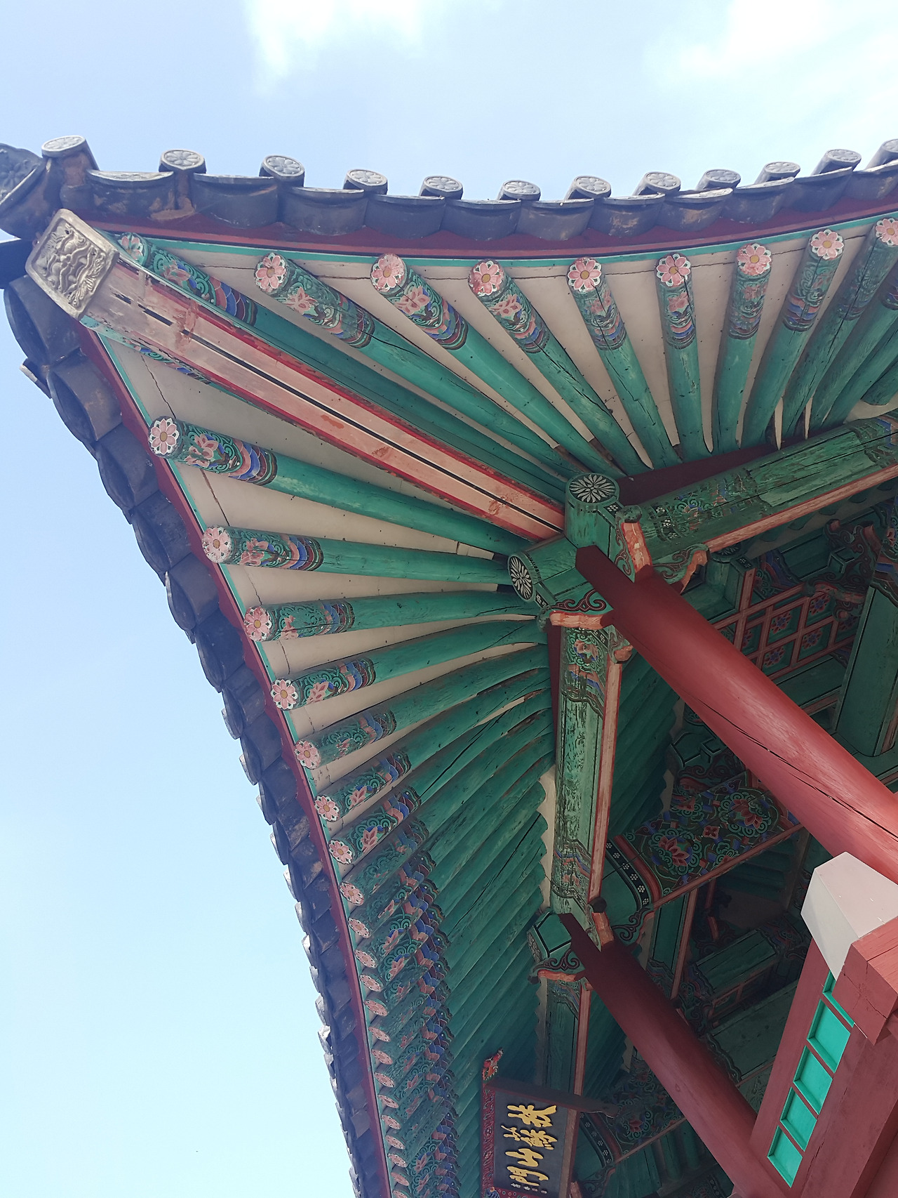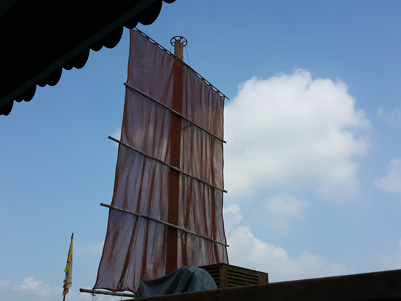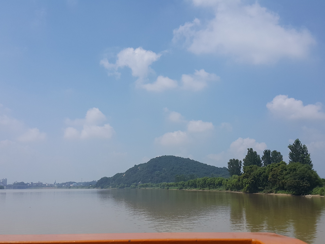 구드래 공원으로 가는 유람선을 타고 부소산문 주차장으로 돌아가기로 했다. 7명만 모이면 바로 출발하는 유람선도 있으나, 황포돛배가 운치있어 보여 30여분을 기다렸다. 황포돛배는 30명 이상이어야 출발한다. 기다리는 동안 눈불개라고 불리는 잉어들의 활기찬 움직임을 보며 백마강이 살아있음을 느꼈다. 불볕 더위였으나 그래도 습하지 않아 황포돛이 가리키는 하늘은 높고 맑았다.