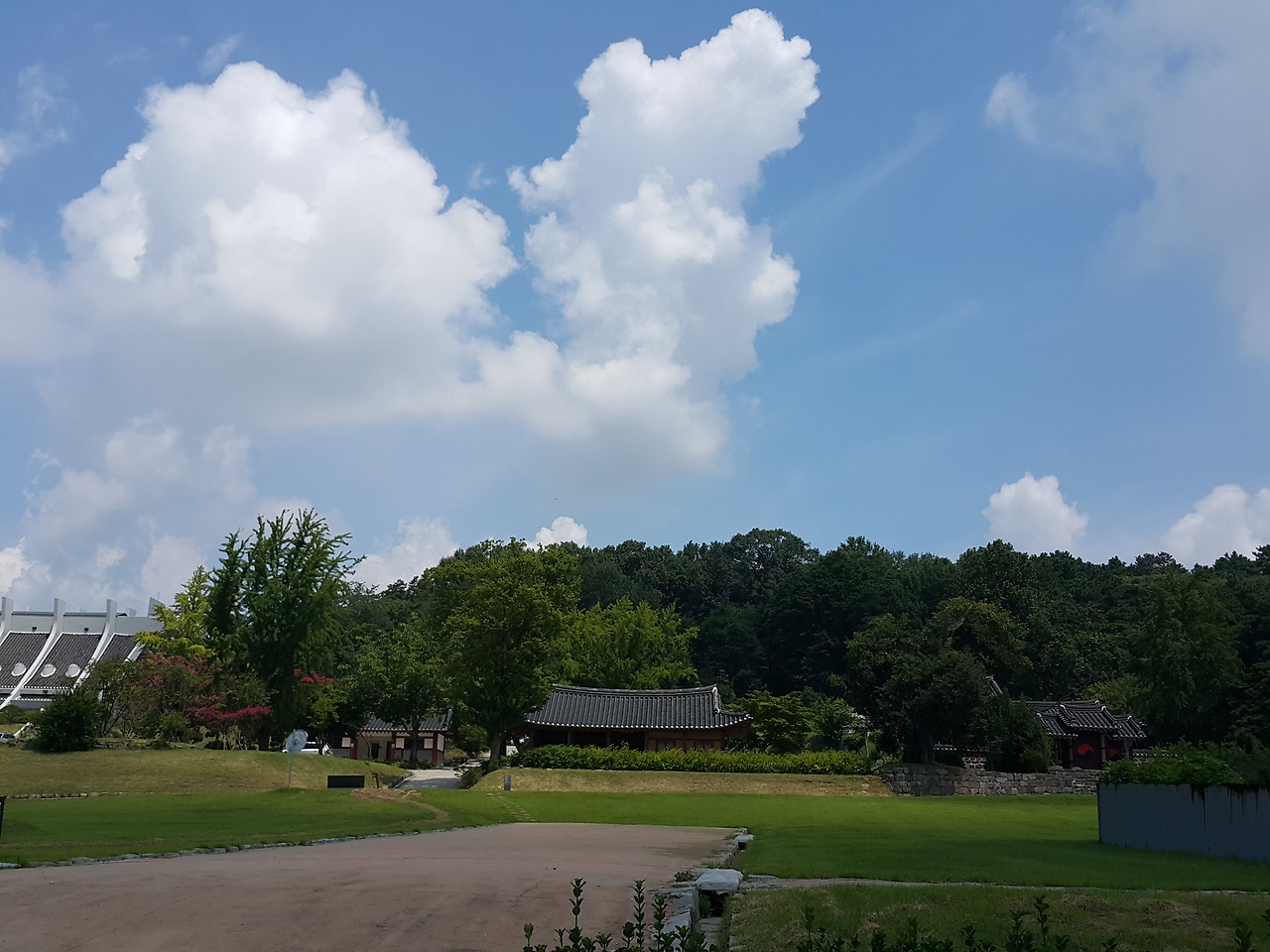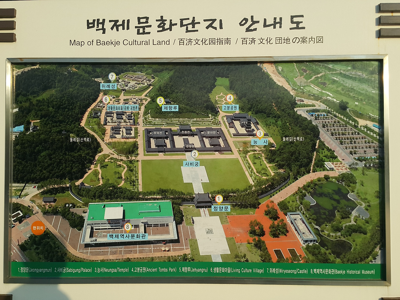 저녁 식사를 하고 나서도 바깥은 한낮처럼 뜨거워 열기가 좀처럼 식지 않았다. 그래서 착각했을까? 부여백제문화단지에 도착하니 이미 관람 시간이 종료되어 시계를 보니 6시가 넘어있었다. 아쉬운 마음으로 안내도 주변만 기웃거리다 돌아왔다. 문화단지 주변에 있는 아울렛 조차에서도 역사적 분위기가 물씬 풍겨나왔다. 온통 백제의 모습을 간직한 곳이 문화유적지 부여이다.