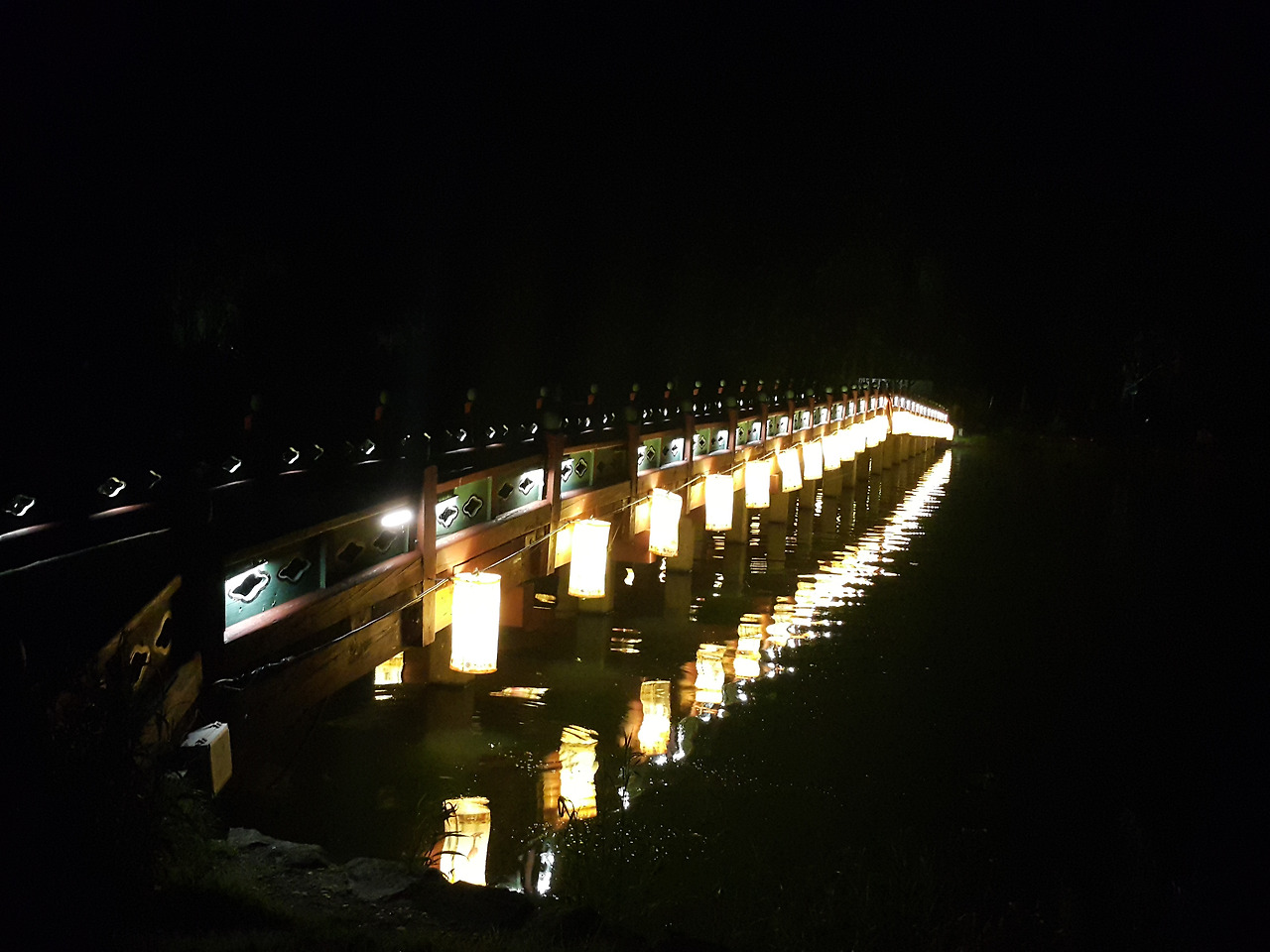 우리나라 최고(最古)의 인공 연못, 포룡정, 서동과 선화 공주, 연꽃 축제 등으로 떠올린 궁남지이나 밤이라 연꽃이 피었는지 조차 알 수 없었다. 연잎들이 검게 흔들리는 길을 따라 저 멀리 보이는 불빛들을 좇아가니 그 곳이 포룡정이었다. 불빛에 늘어진 능수버들하며, 색색으로 솟아오르는 화려한 분수까지 정말 아름다웠다. 불빛으로 에워싼 포룡정 다리는 장관을 이뤄 무더운 밤공기를 이겨낼 만했다. 일본 정원 문화의 원류가 이곳이라니 자랑스럽기가 끝이 없다.