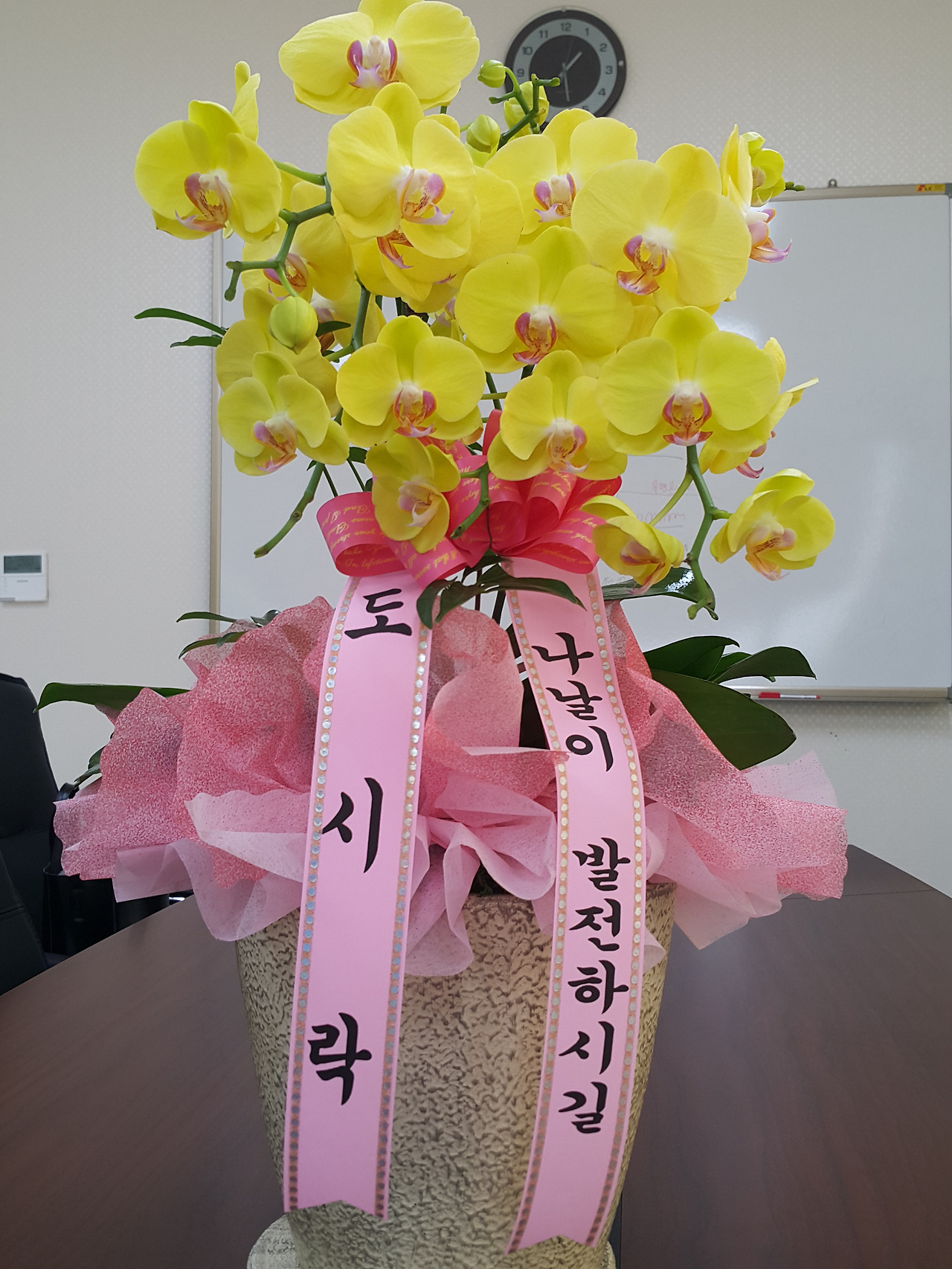 노랗게 핀 서양란 화분을 안고 부여 은산면 산업 단지에 있는 남편 회사로 향했다. 깜짝 방문을 위해 꽃집 사장님이 동행해 주었다.