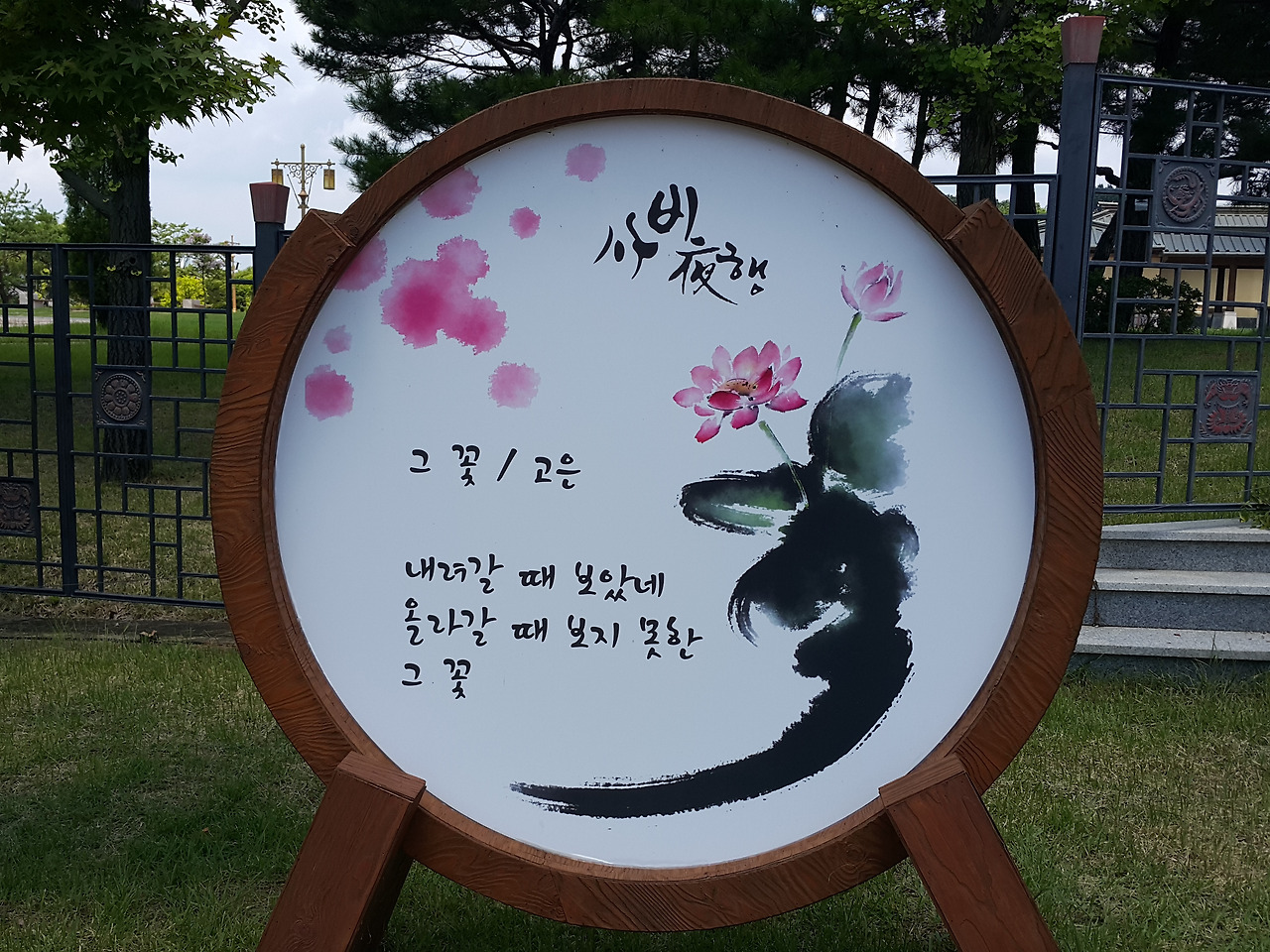참게 매운탕으로 점심을 먹고, 식당 바로 앞에 있는 정림사지 박물관으로 향했다. 담을 따라 매표소로 내려가는 길에는 내가 좋아하는 신경림, 고은, 신동엽 시인들의 시가 양 옆에 서서 백제를 노래하고 있었고, 인근 백제 초등학교 교문도 마치 백제 유물인 듯 예스러워 보였다.