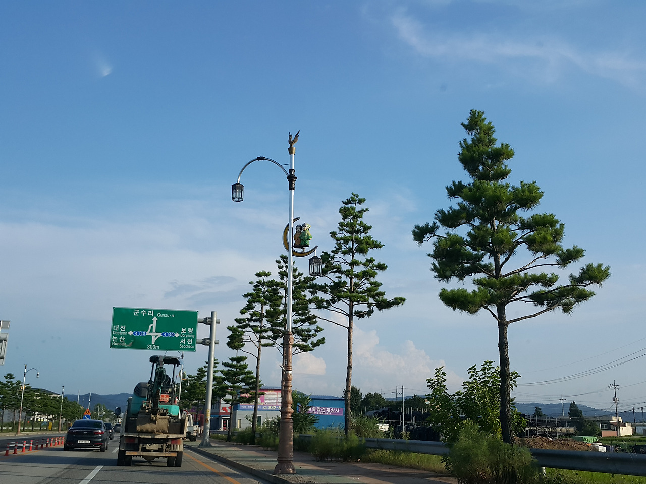 인천에서 부여로 내려 오는 동안 도시의 변화를 가로등에서 느낄 수 있었다. 청양을 지날 때는 곳곳에 고추를 머리에 인 가로등이 즐비했고, 궁남지로 들어올 때는 선화공주와 서동 인형이 가로등 머리에 앉아 있었다. 그런데 나중에 이 사진들을 보니 부여 가로등 머리에 모두 금동대향로 모형이 얹어 있었다. 그 때는 보이지 않던 대향로가 이제야 눈에 들어오다니, 아는 만큼 보인다는 말을 다시 실감해 본다.