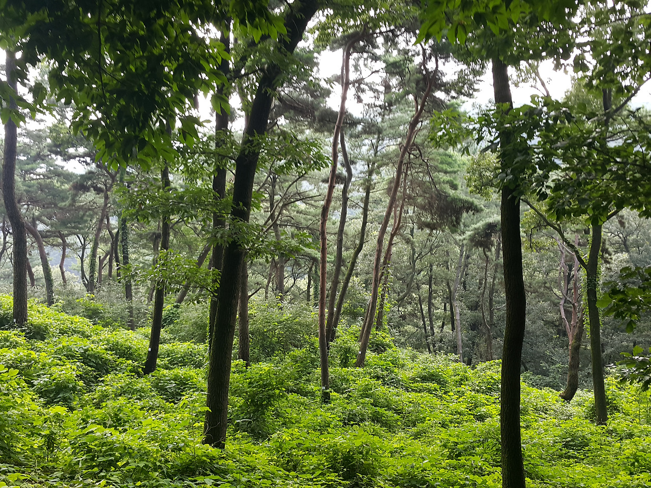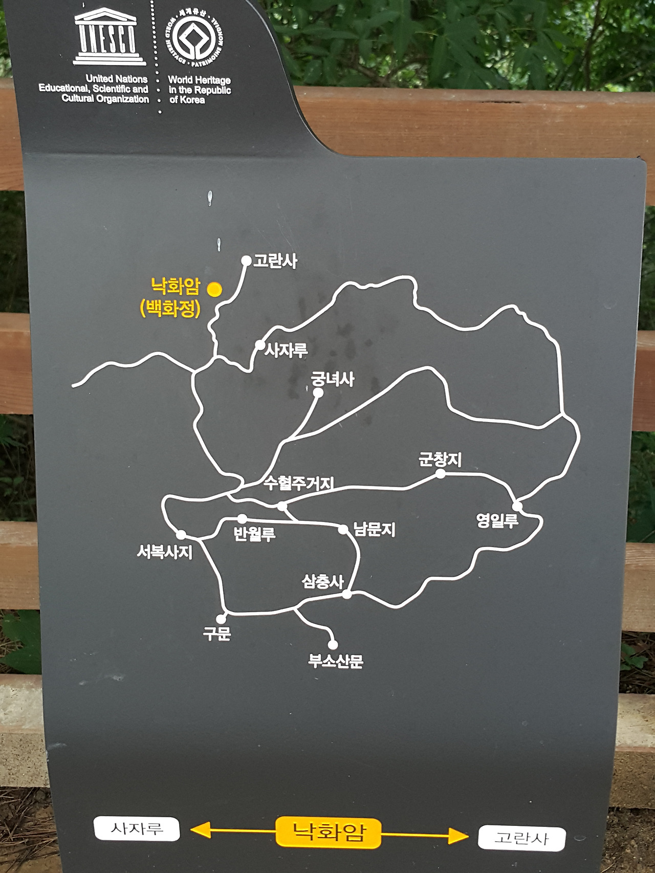 다음날 아침 부소산성에 오르기로 했다. 부소산문을 지나 왼쪽 방향으로 향하는 제3코스를 택했다. 폭염주의보가 내릴 만큼 아침부터 태양은 달아올랐으나 부소산성 길에 이르자 이내 소나무 등으로 우거진 울창한 숲들이 그늘을 만들어 내어 주었다. 서복사 터를 지나 낙화암에 이르기까지 완만하고 편안하게 만들어진 둘레길은 산책로로 맞춤이었다. 날씨는 뜨거워 온 몸이 땀에 젖었지만 고른 숨으로 편안하게 오를 수 있었다.