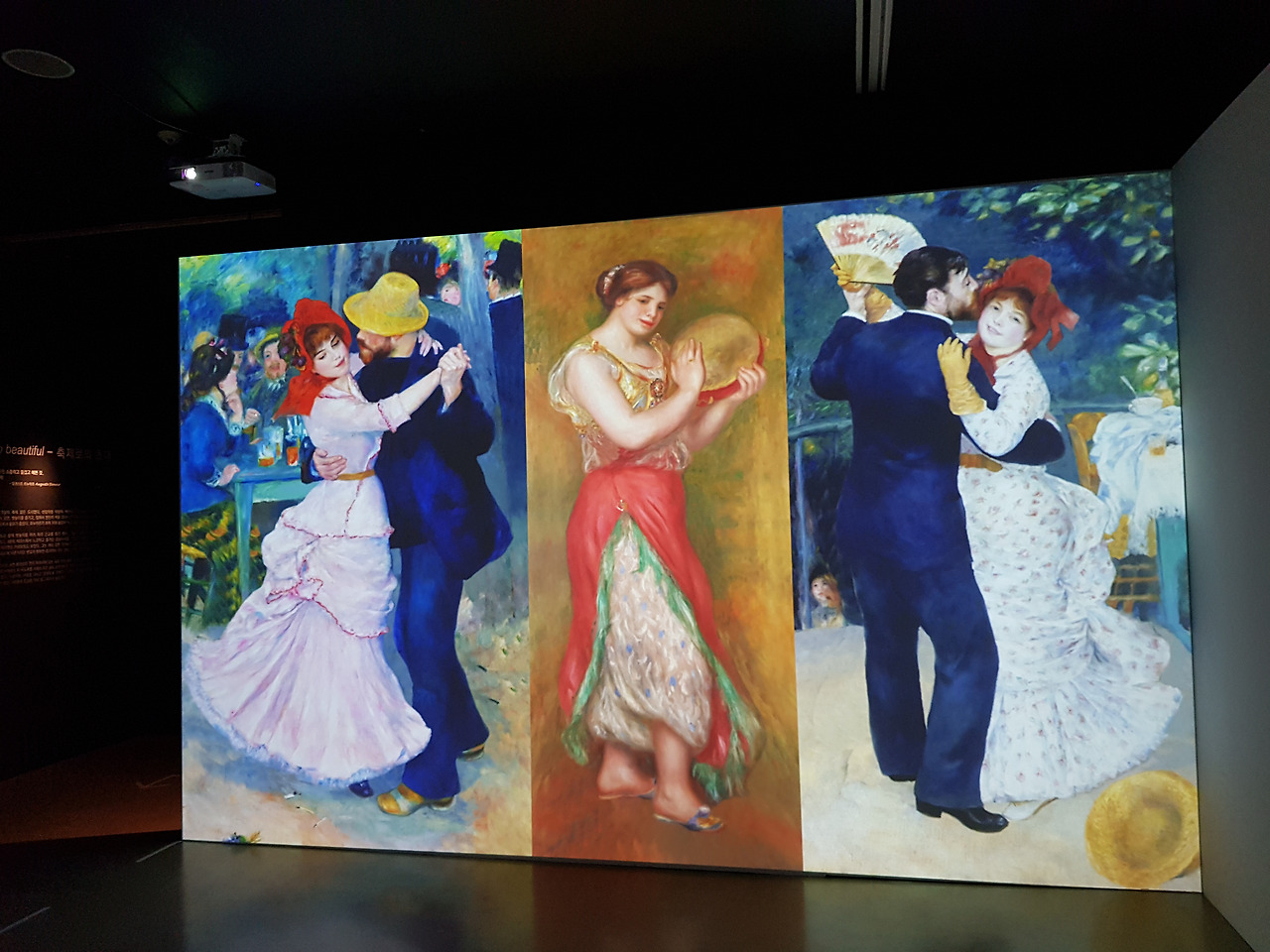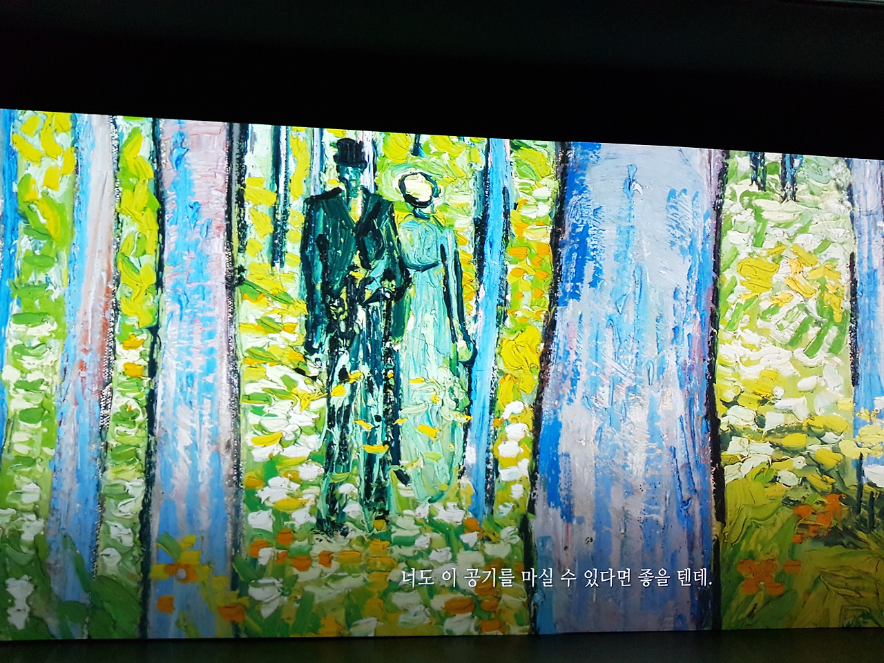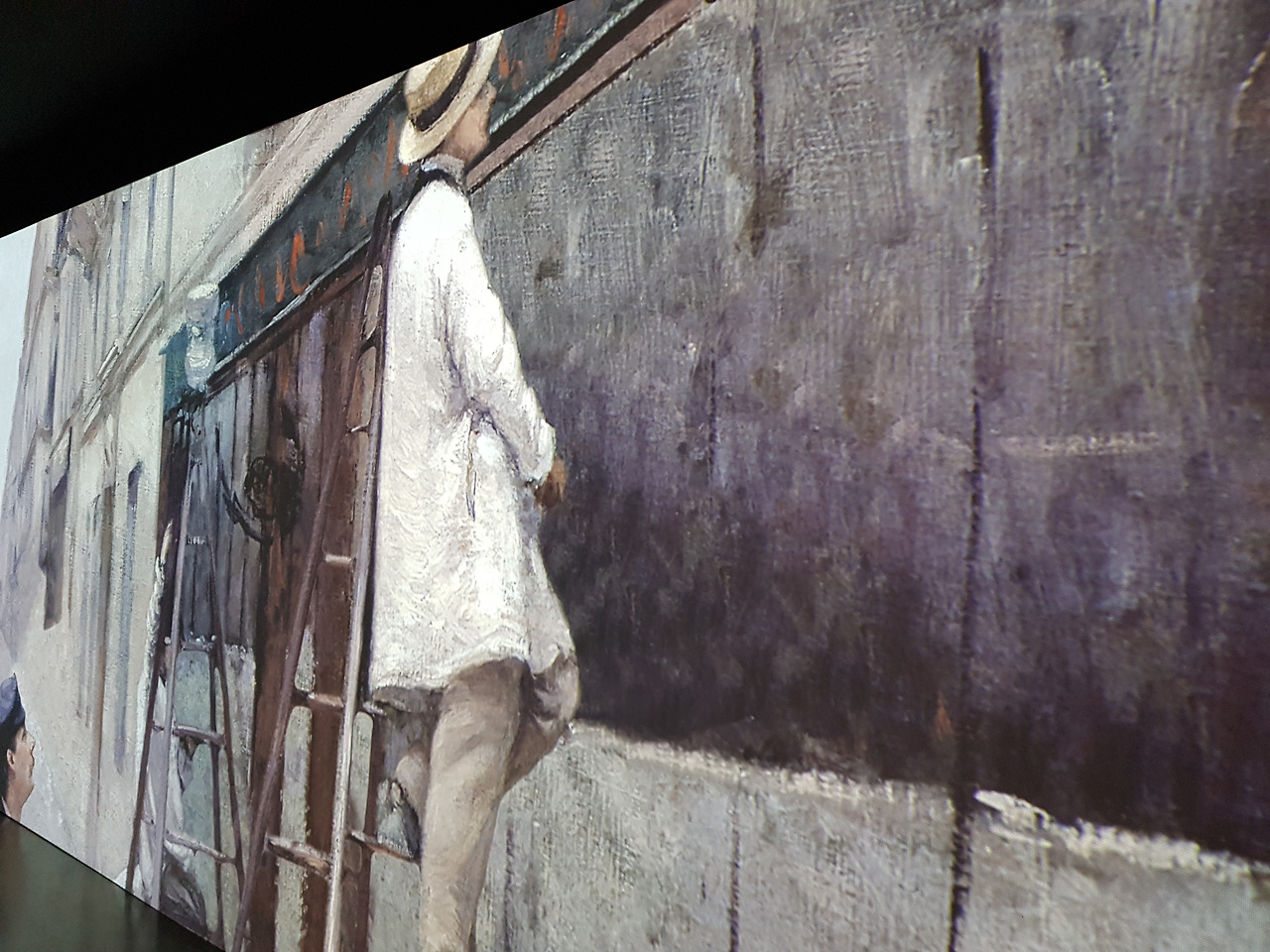 전시장에서는 이 그림을 디지털로 표현하여 그림 속 파리 시민들 사이를 마치 나도 우산을 쓰고 멀고 가까운 거리 사이를 걷는 듯 효과를 주어 더 실감 나게 감상할 수 있어 좋았다.