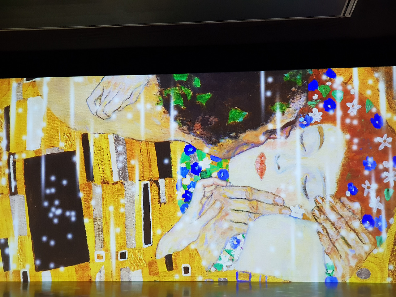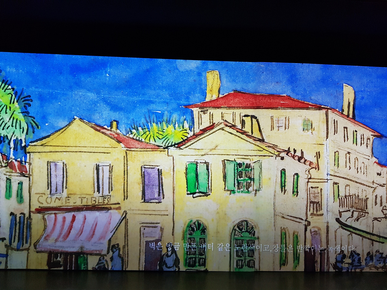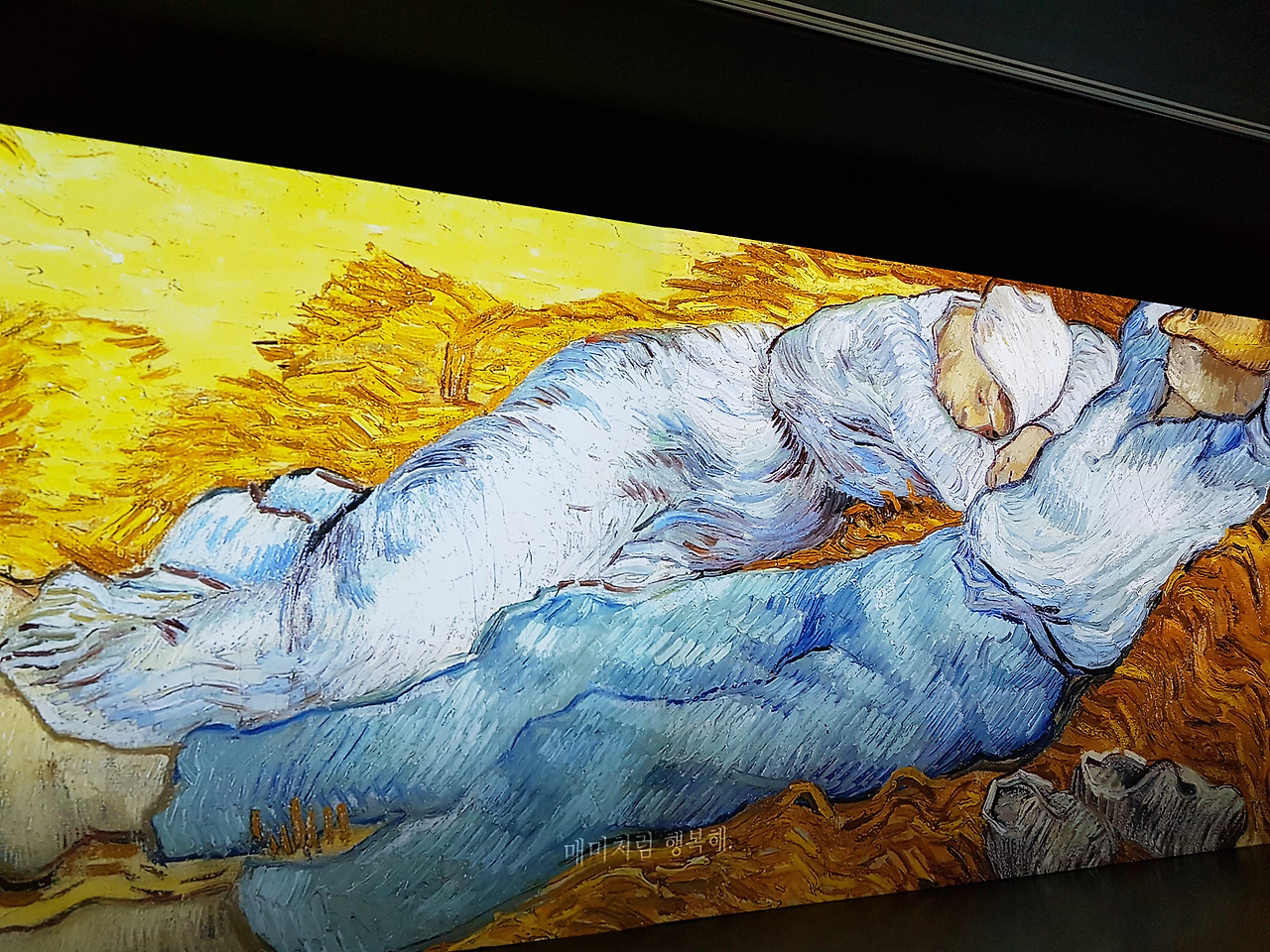 전시장에서는 이 그림을 디지털로 표현하여 그림 속 파리 시민들 사이를 마치 나도 우산을 쓰고 멀고 가까운 거리 사이를 걷는 듯 효과를 주어 더 실감 나게 감상할 수 있어 좋았다.
