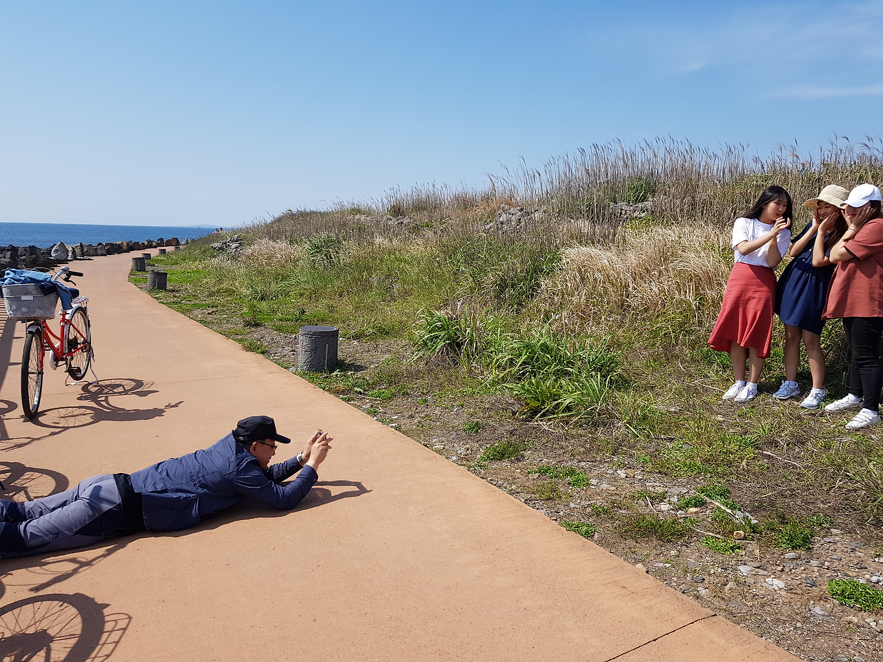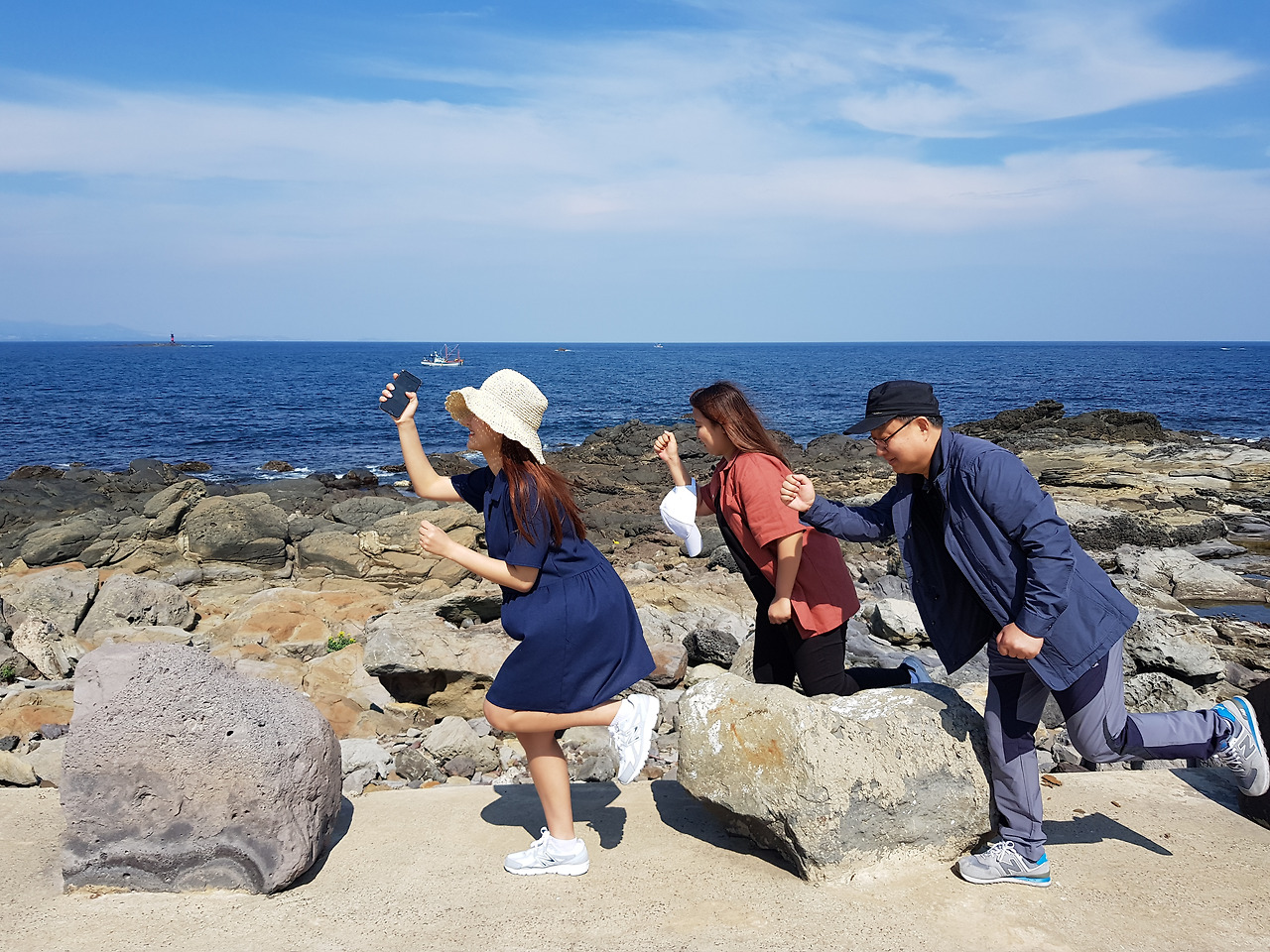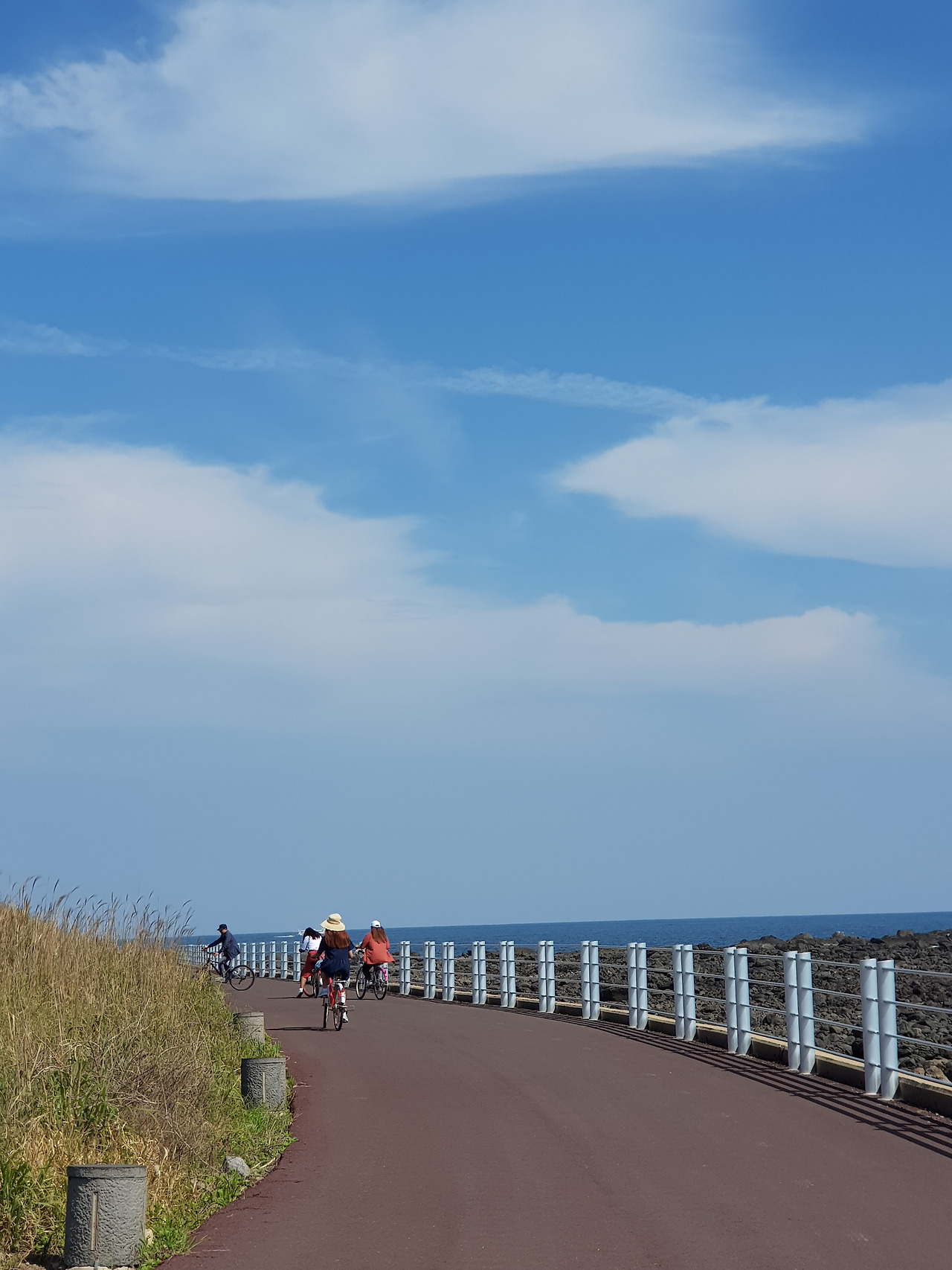 어떤 색깔로도 그릴 수 없는 아름답고 시원한 하늘과 바다색 때문에 우리는 즐거운 마음을 주체할 수 없었다. 환호성을 지르며, 깊은 숨을 뿜어내며 아름다운 ‘가파도’ 속으로 쏙 들어가 안겨 버렸다. 앞서 달리는 가족들의 모습은 찍히는 대로 인생 컷이 되었다.