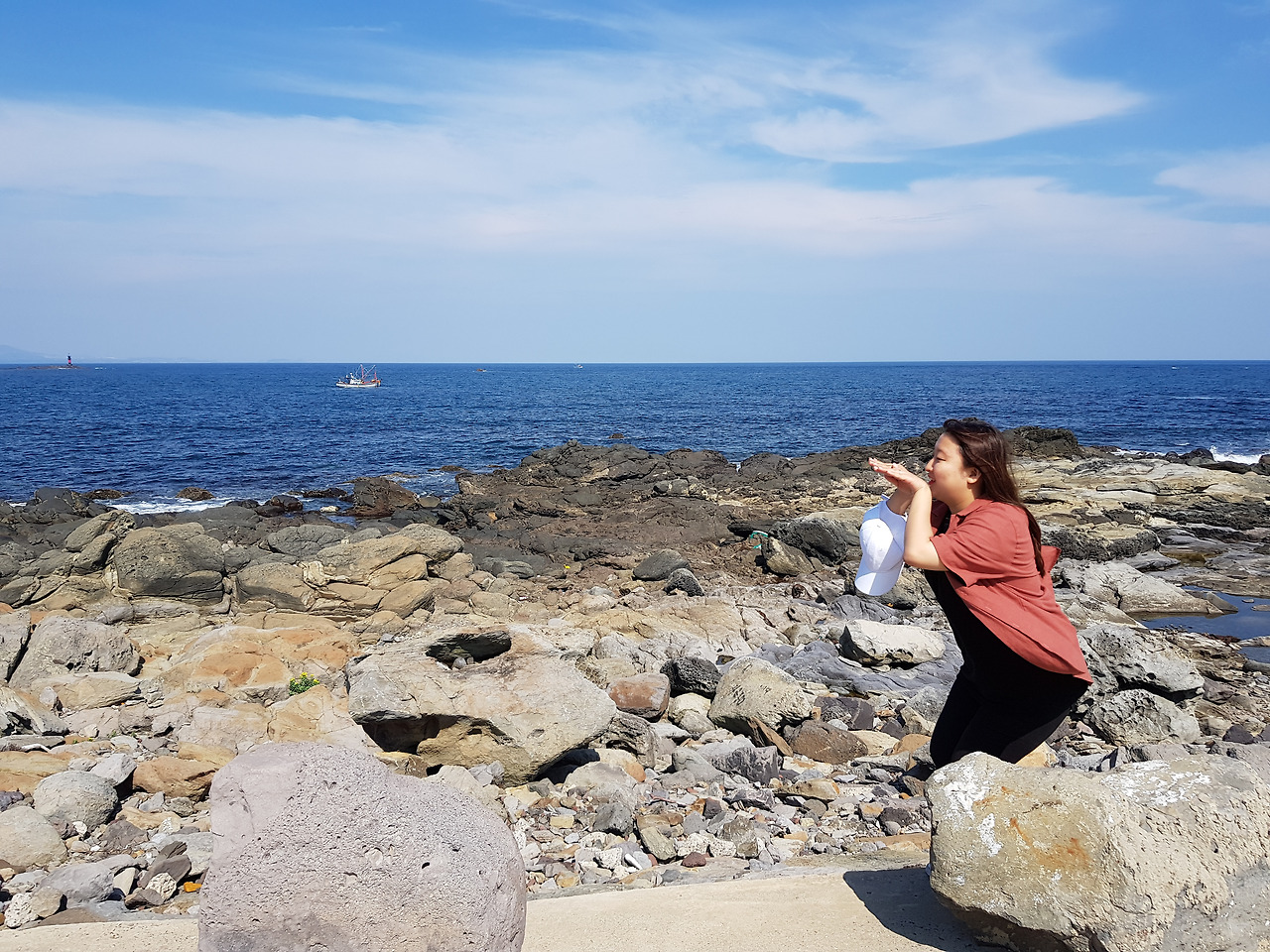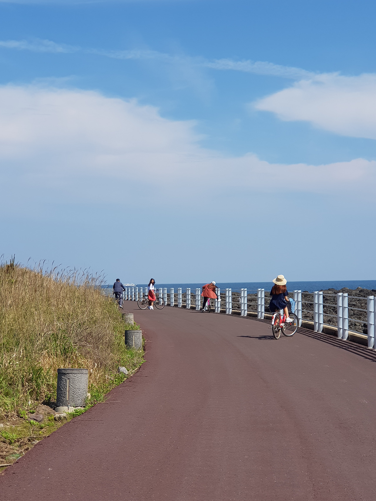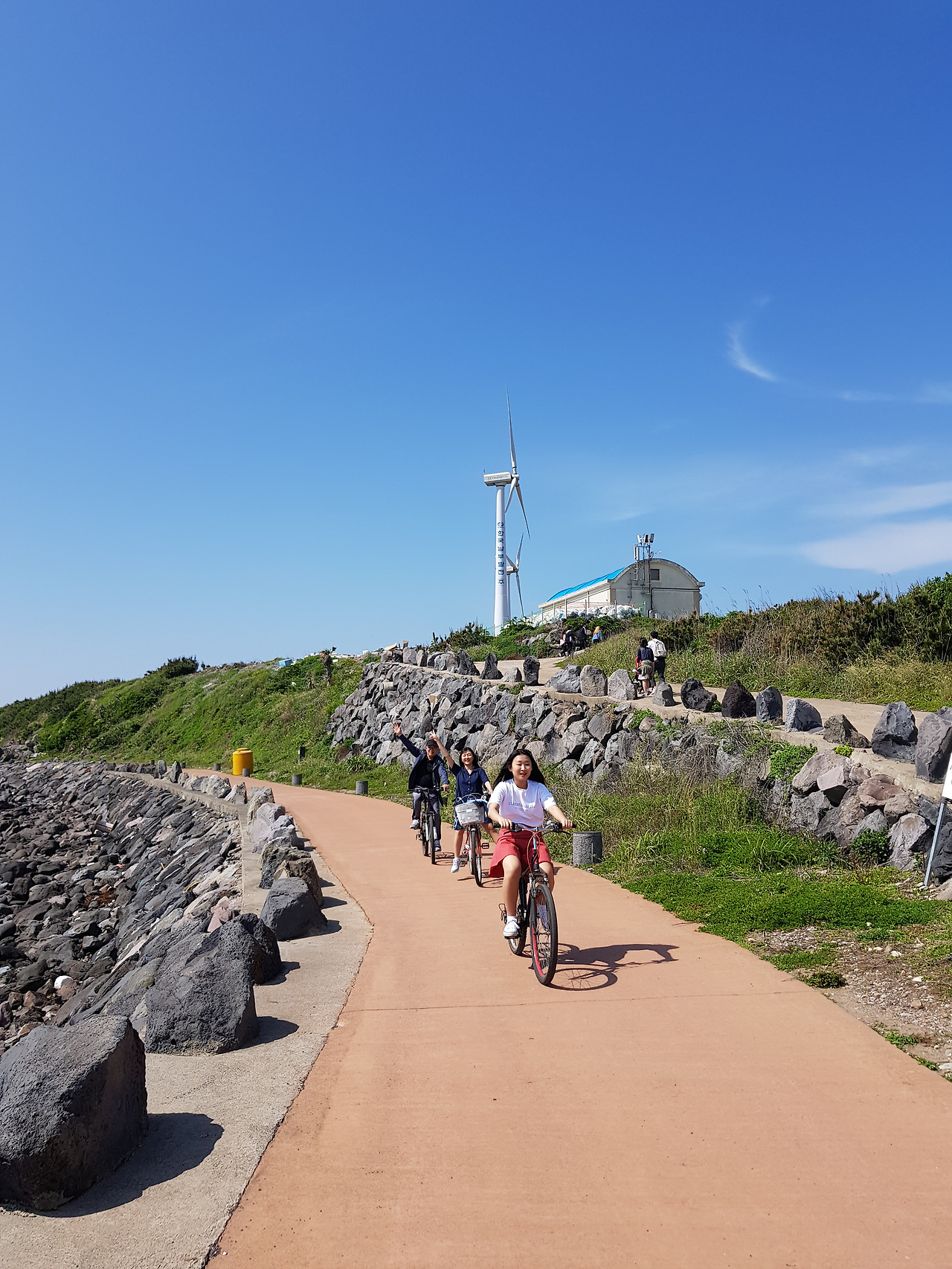어떤 색깔로도 그릴 수 없는 아름답고 시원한 하늘과 바다색 때문에 우리는 즐거운 마음을 주체할 수 없었다. 환호성을 지르며, 깊은 숨을 뿜어내며 아름다운 ‘가파도’ 속으로 쏙 들어가 안겨 버렸다. 앞서 달리는 가족들의 모습은 찍히는 대로 인생 컷이 되었다.