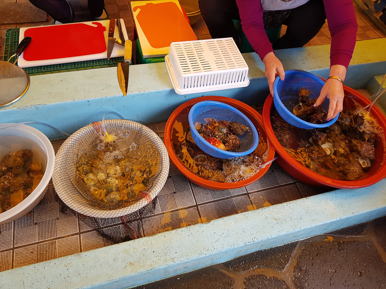 모슬포 ‘운진항’에서 배를 기다리며 해녀님들이 따다 판다는 회 한 접시(30,000원)도 맛나게 꿀꺽하고 배를 탄 후라 기분은 더 좋았다.