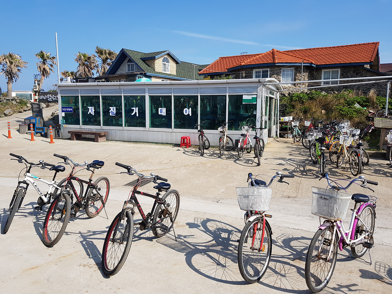 배에서 내리자마자 자전거 5대를 대여(1인용-5,000원, 2인용-10,000원)했다.