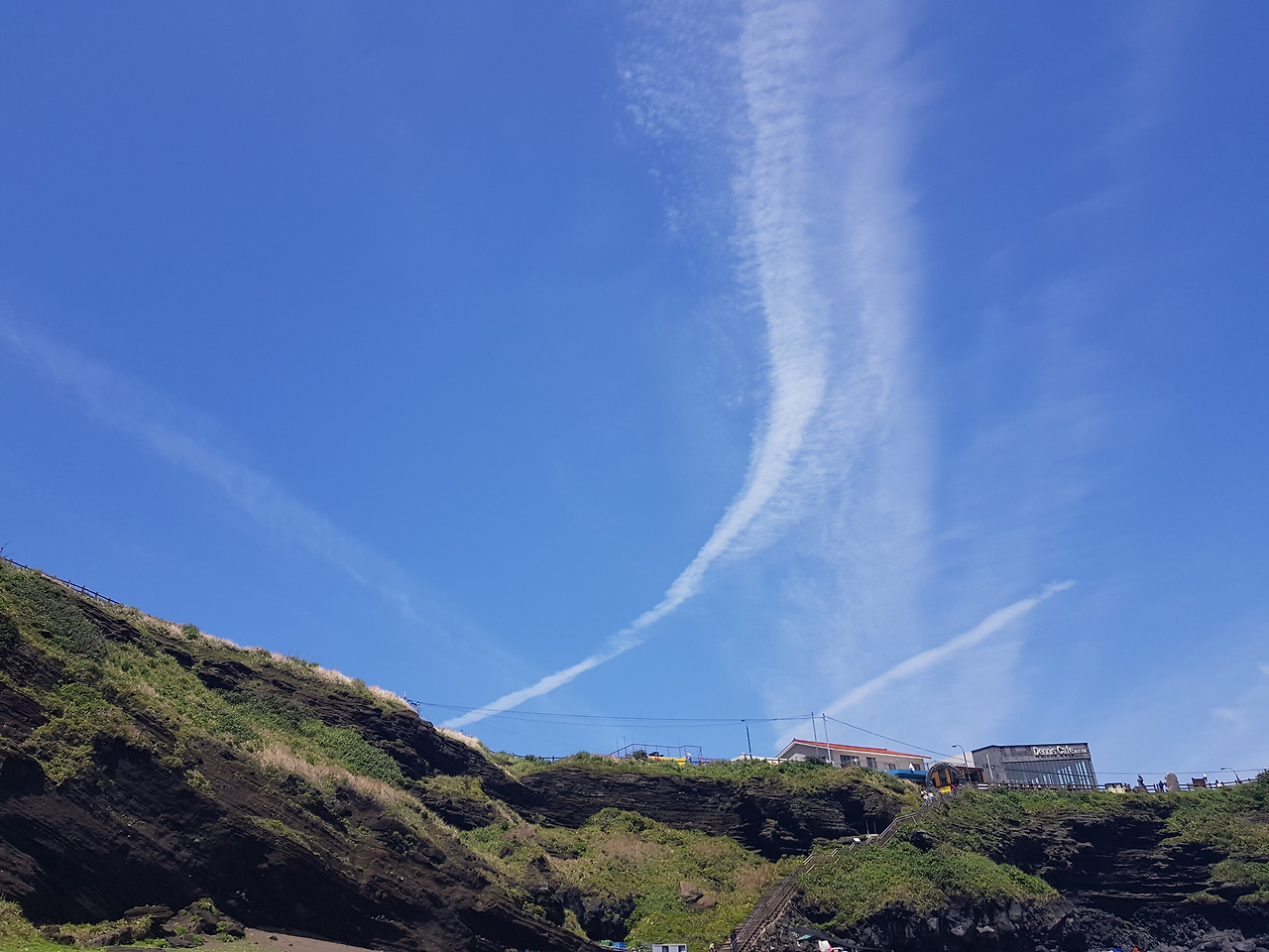 파도의 움직임이 꼭 검은 바다에 흰 아기고래가 헤엄쳐 나에게 달려오는 듯하다. 그것도 여기저기 여러 마리가 서로 경쟁하듯 달려온다.