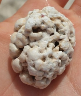 ♡ 홍조류의 산호말 등은 광합성을 하여 세포 혹은 세포사이의 벽에 탄산칼슘을 침전시킨다. 석회조류 중의 하나로 보통 직경이 4∼5cm이고 형태는 전체적으로는 구형이며 표면이 울퉁불퉁한 모습을 보여준다.