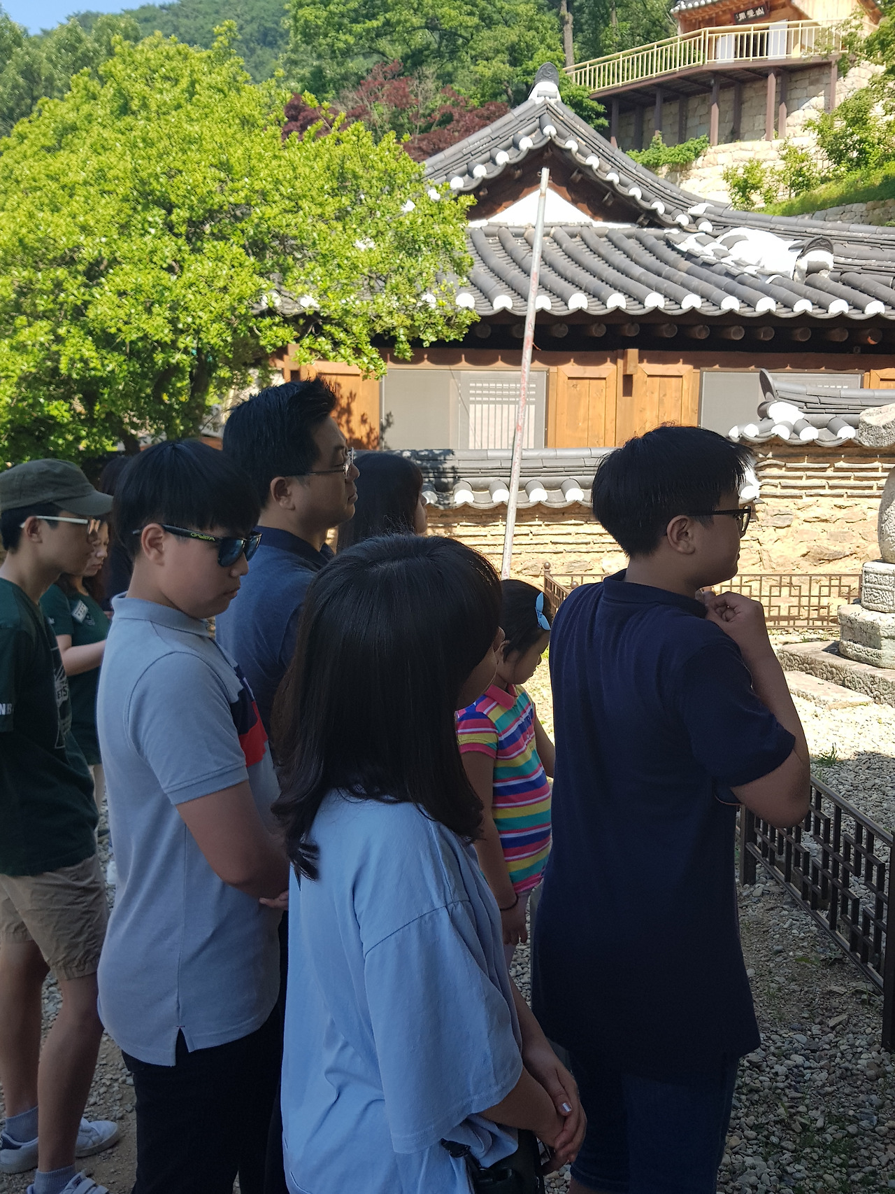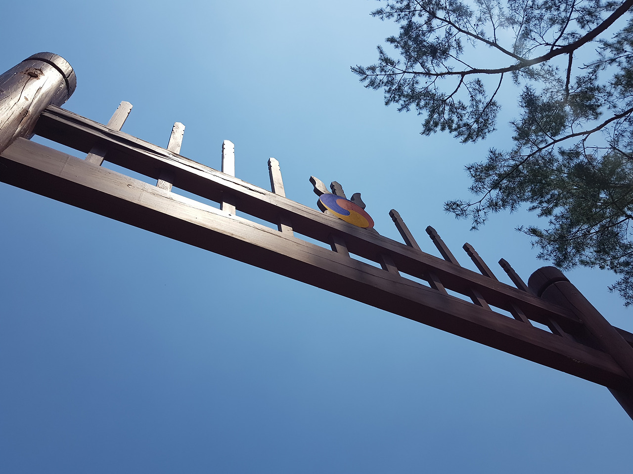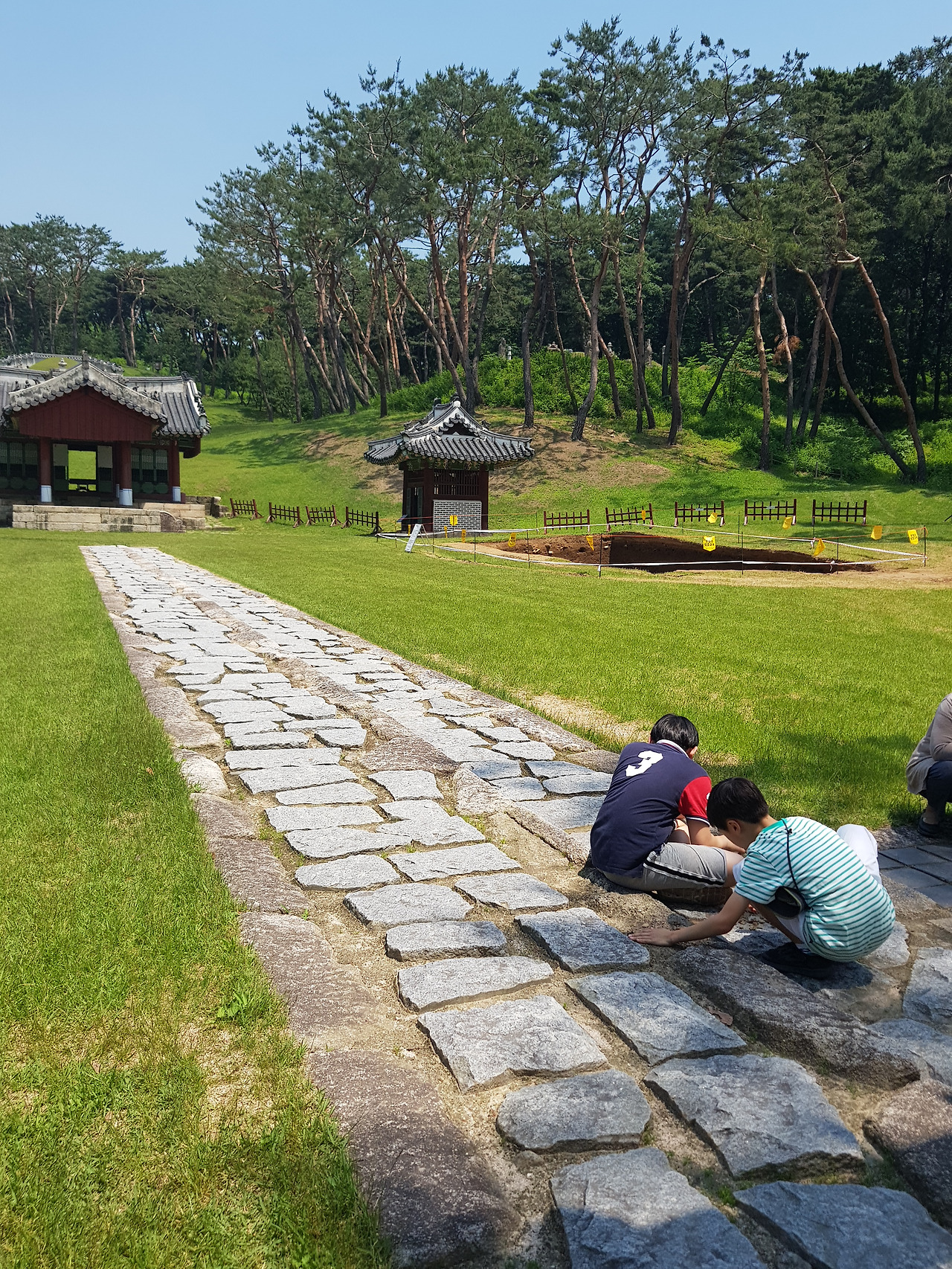 홍살문 아래에서의 설명 -아이들은 놀면서도 다 듣는다.