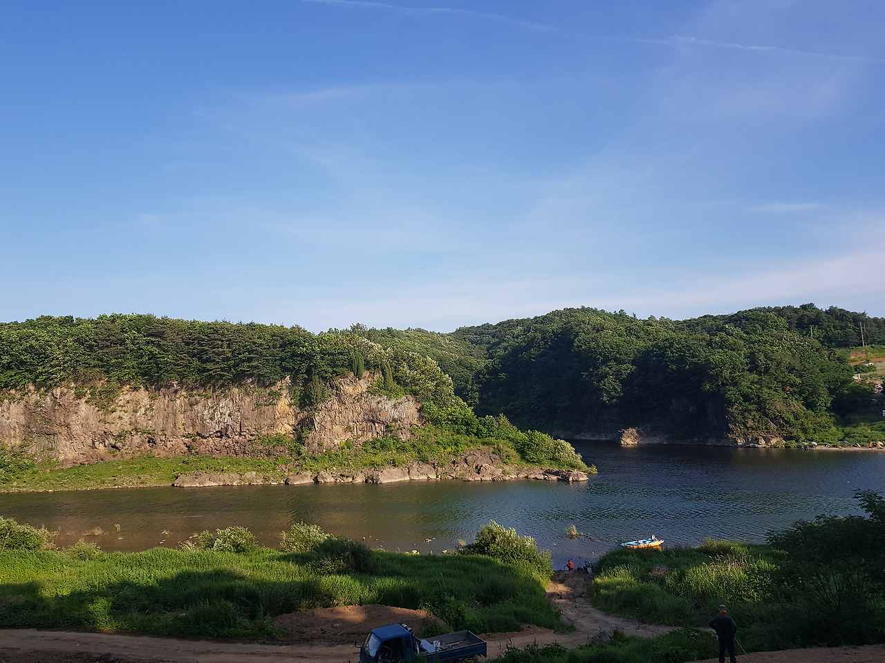 한탄ㆍ임진강 국가지질공원에 들러 때마침 함께한 지리 선생님의 용암의 형성 과정에 대한 전문적 설명을 세세히 듣고 숙소로 향했다. 천연기념물로 지정된 아우라지 베개용암은 바다와 관련이 없는 이곳 영평천의 차가운 물을 만나 형성된 것으로 바다가 아닌 내륙 강가에서 발견되었기에 매우 희귀한 자료라고 한다.