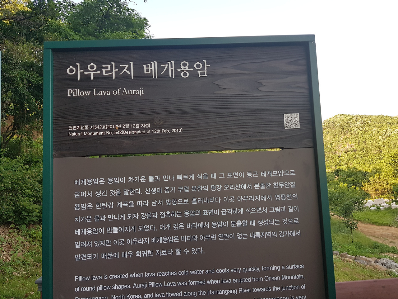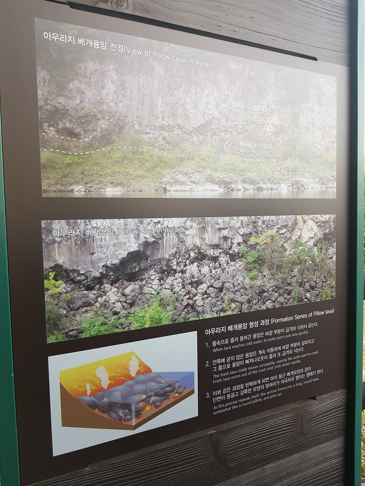 아우라지 베개용암 형성 과정이 상세히 설명되어 있다.