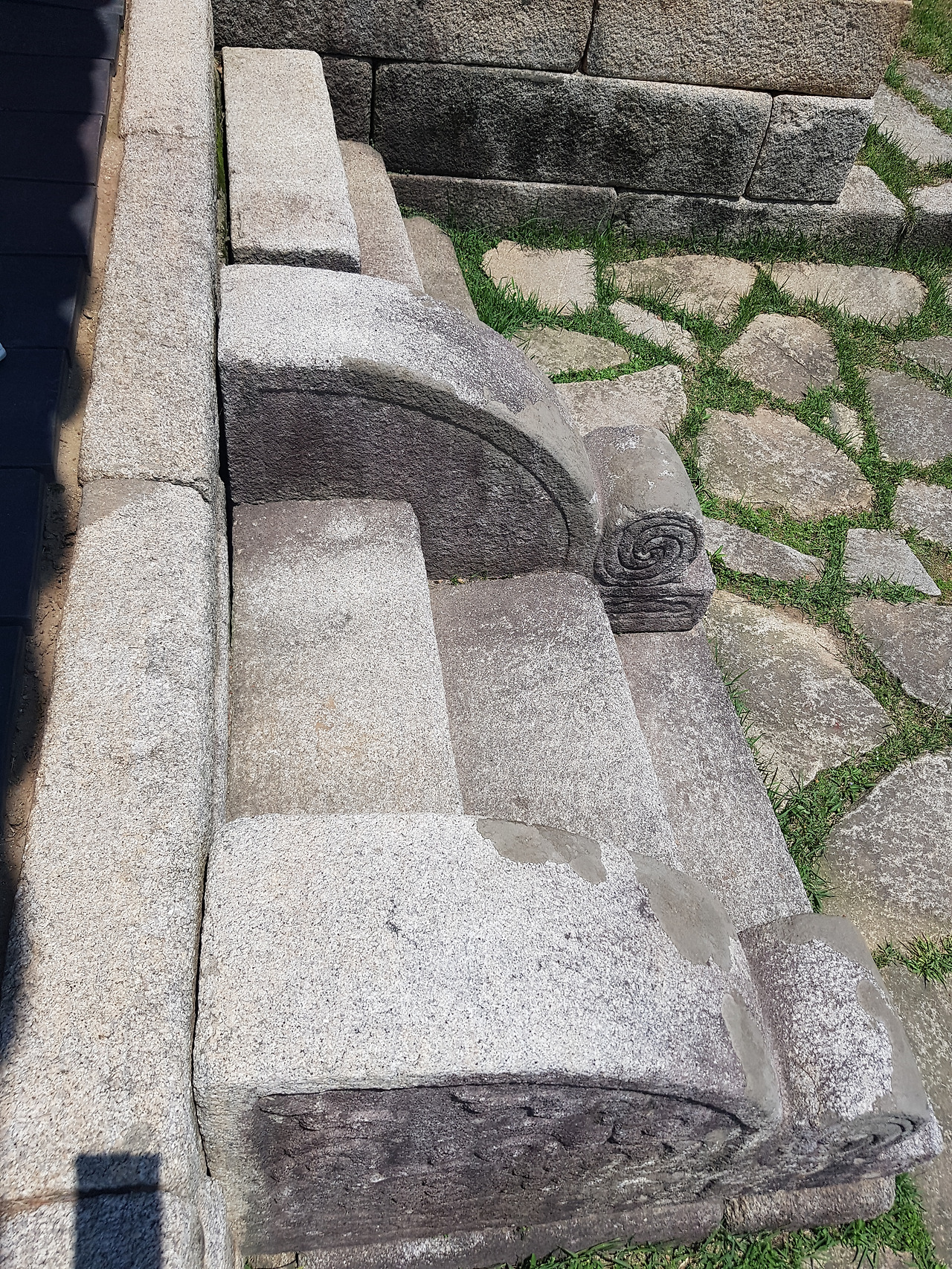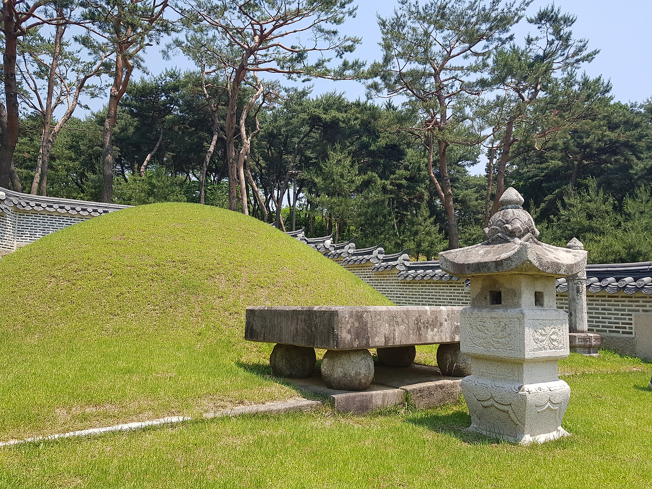 정자각에 오를 때는 계단이 두 개이나, 내려올 때는 하나이다. 오를 때는 신과 함께, 내려올 때는 참배자(왕)만! 신은 정자각을 통해 봉분으로!
