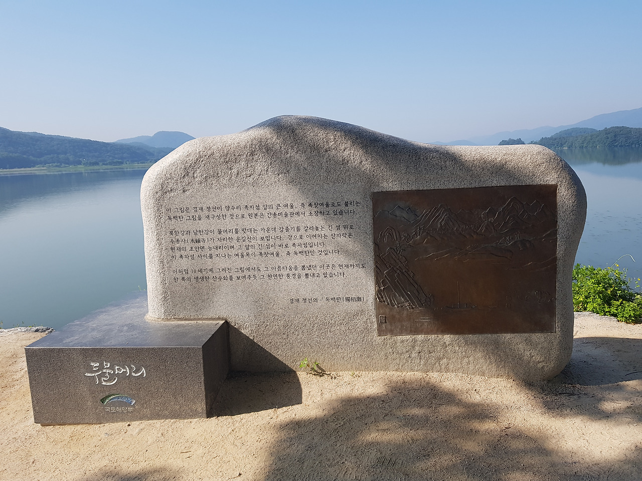 저 너머 희미한 물안개와 하늘과 강물이 만나는 수평선에 그대로 포개어진 산과 나무와 돛단배가 차분한 아름다움을 만들어 내고 있었다.